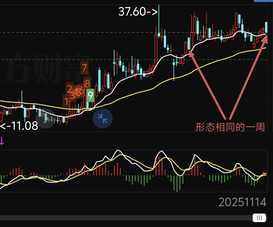 德尔股份周线图中本周与图中的5月第二周极其相似,是否会走出后续同样的行情?