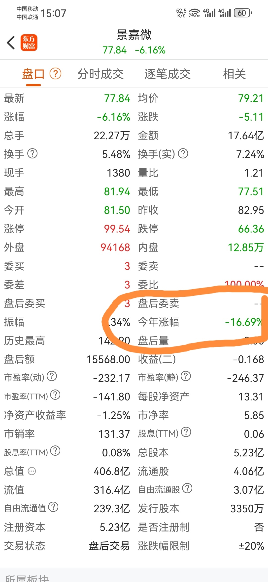 景嘉微你这在2025年科技牛市里也是奇葩的存在了!到今天年增长-16.67%,能