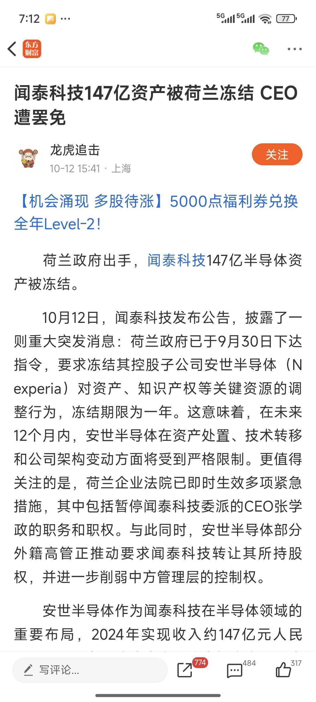 闻泰科技147亿资产被荷兰冻结CEO遭罢免!国产替代,刻不容暖!