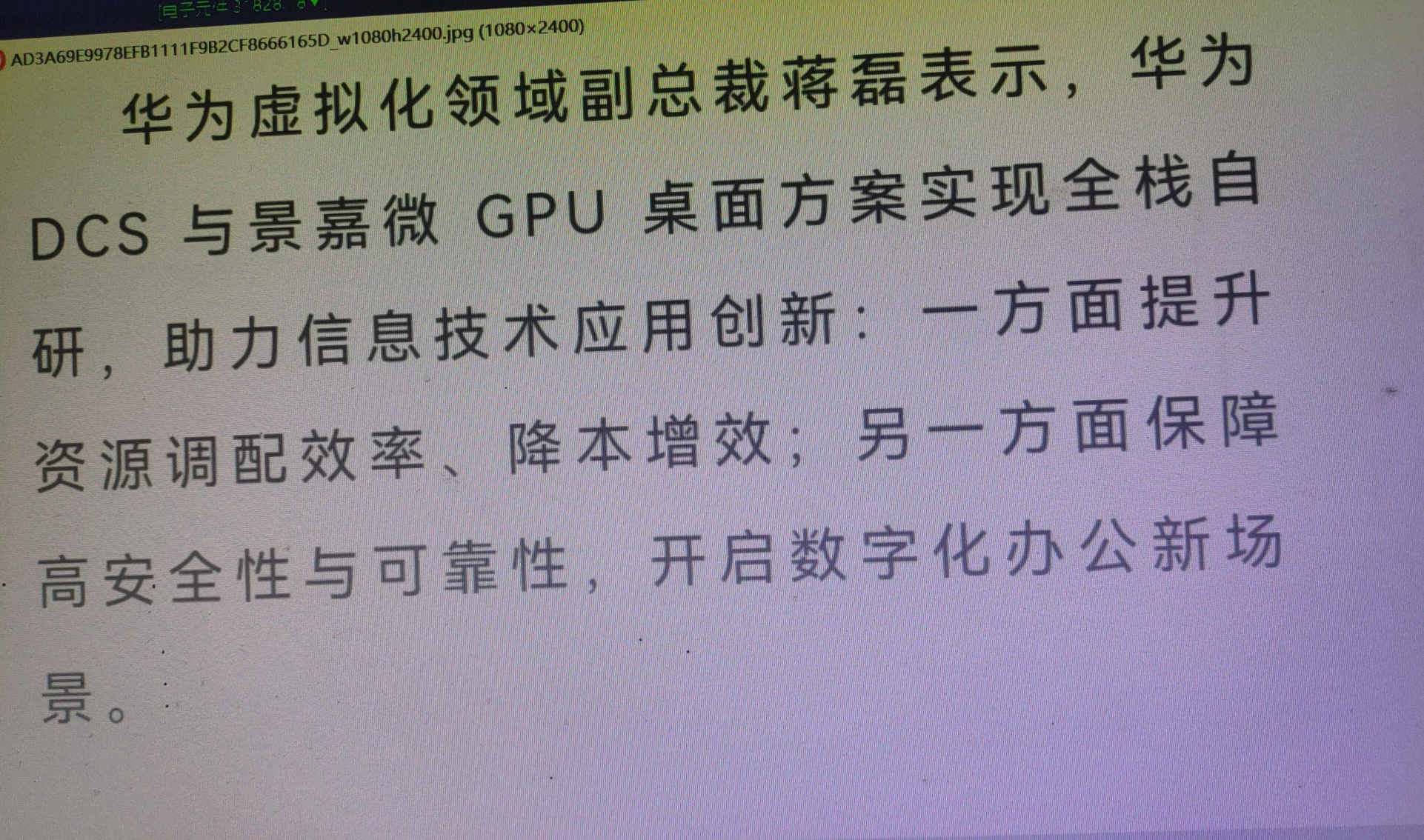 华为付总裁蒋磊表示:华为与景嘉微实现全栈自研,保障其高安全与可靠性!