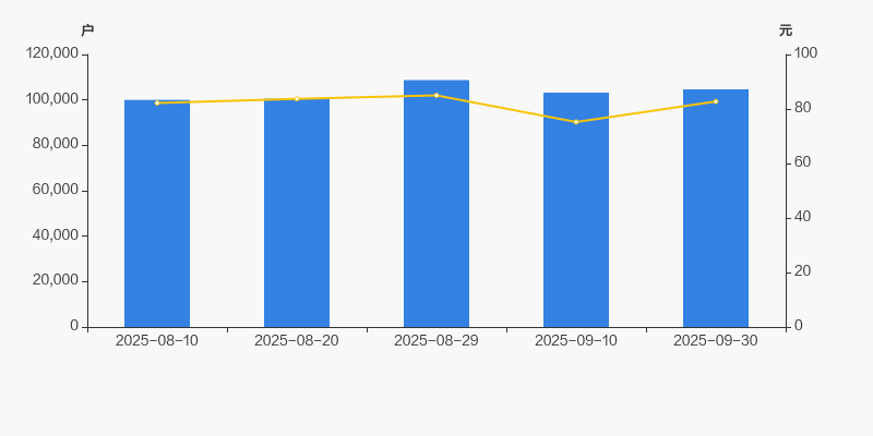 2025年8月10日至今,公司股东户数有所增长,区间涨幅为4.66%。2025年8月10日至2025年9月30日区间股价上涨0.67%。