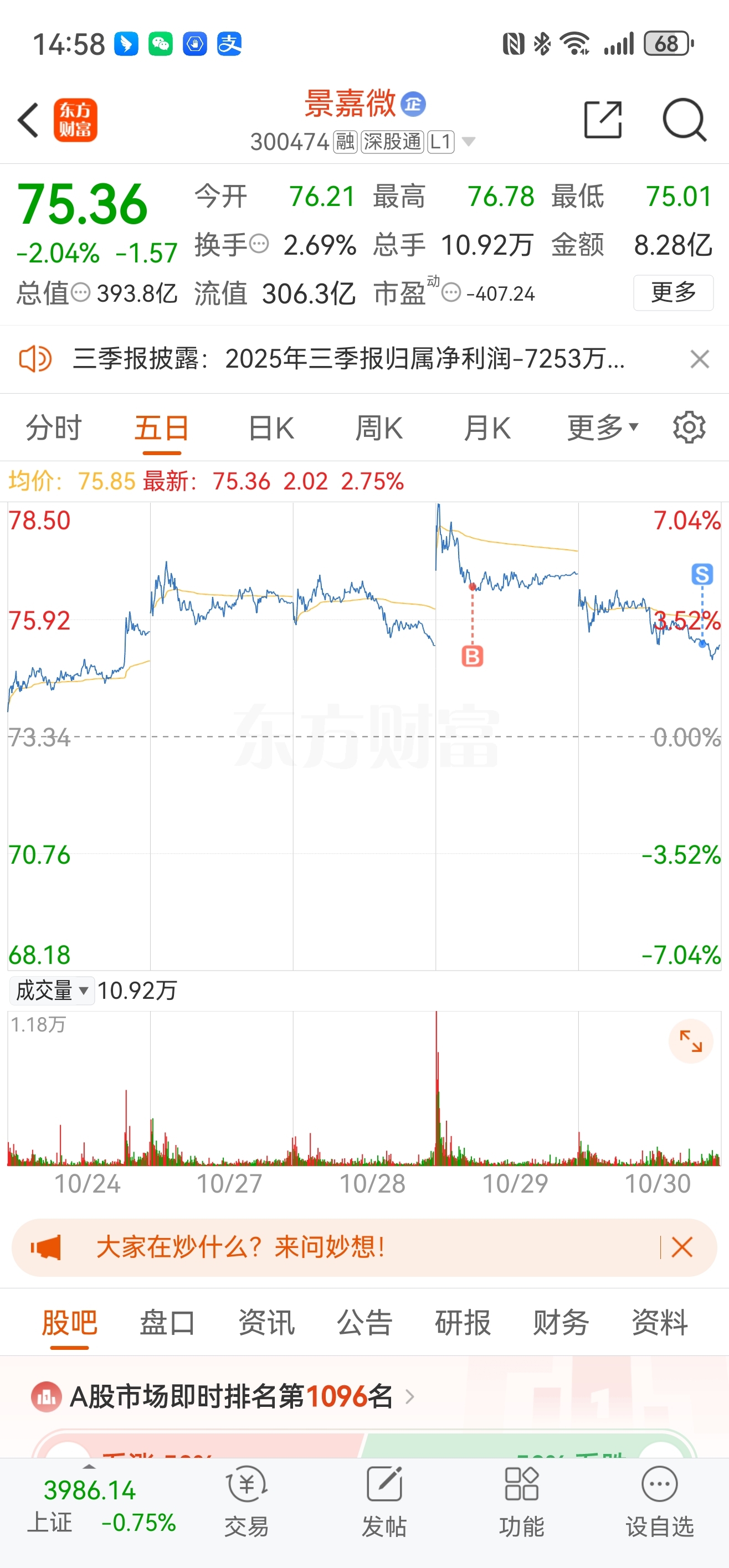 $景嘉微(SZ300474)$ 破位,出了。