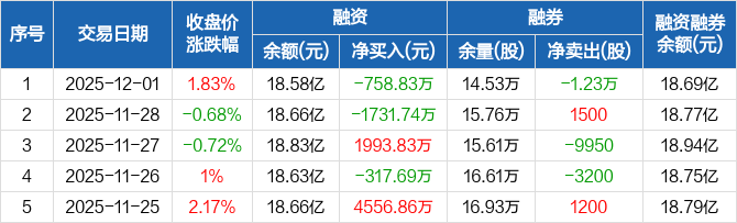 景嘉微:融资净偿还758.83万元,融资余额18.58亿元(12-01)