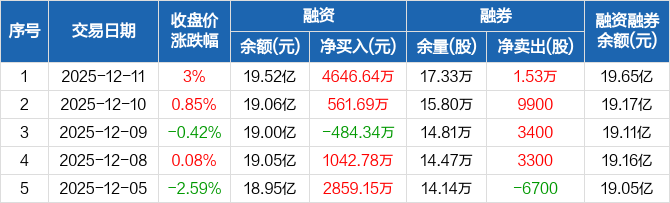 景嘉微:融资净买入4646.64万元,融资余额19.52亿元(12-11)