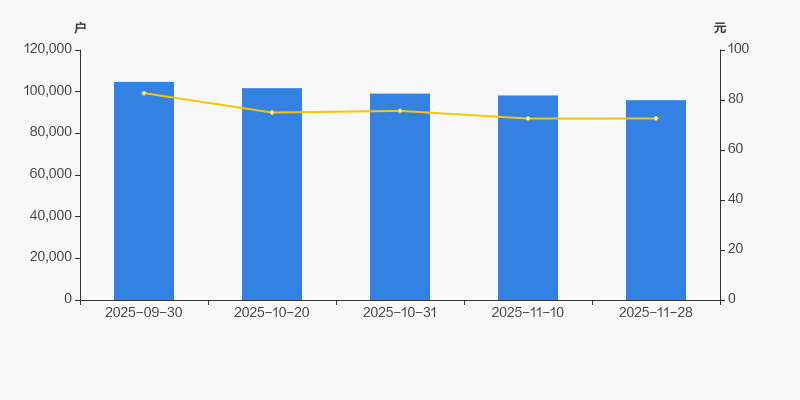 自2025年9月30日以来,公司股东户数连续4期下降,截至目前减幅为8.37%。2025年9月30日至2025年11月28日区间股价下降12.27%。