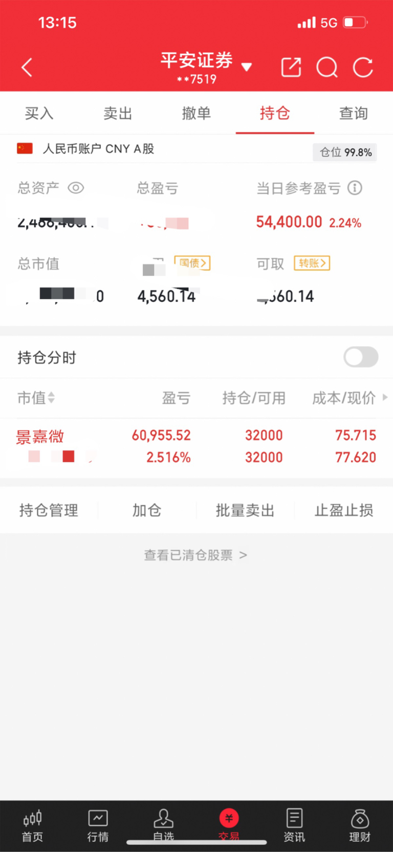 【60W炒股之旅|第345】今日实盘操作简记:•继续持有:景嘉微卖出:买入:本贴