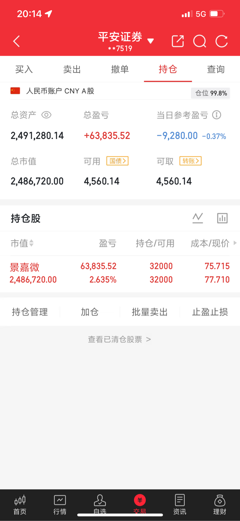【60W炒股之旅|第36】今日实盘操作简记:•继续持有:景嘉微卖出:买入:本贴为