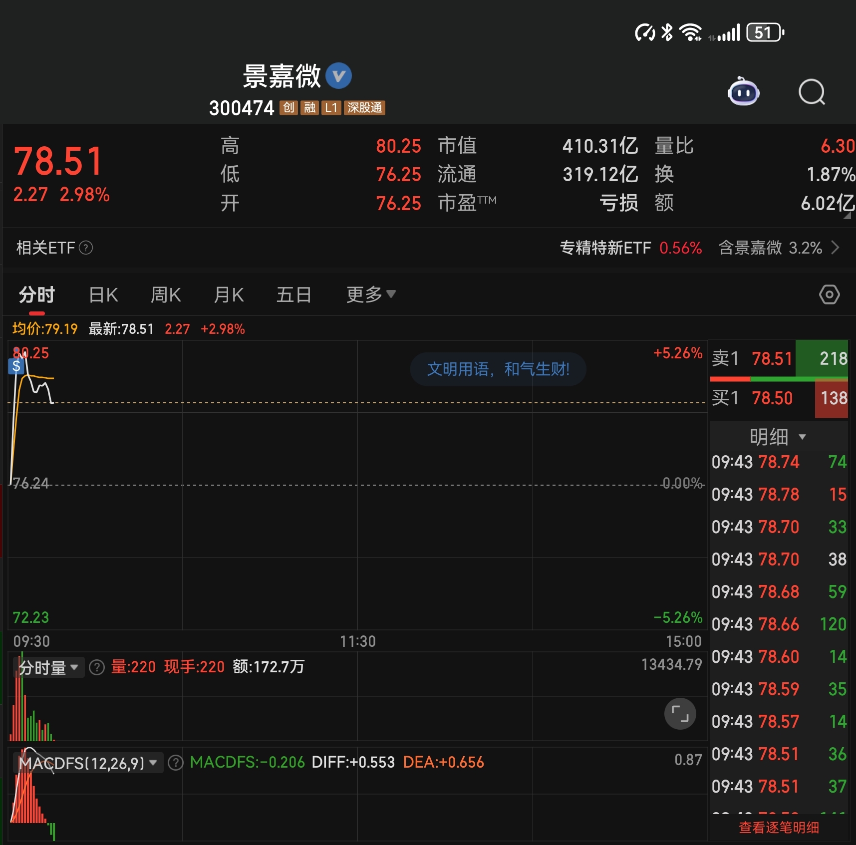 $景嘉微(SZ300474)$ 给了大家解套的机会,有些人不感恩,非要去追高,赖谁?今天冲高我减了,成本又变低了,而有些人冲进来又要被套个把月了,因为今天的冲高回落明显的主力自己救自己,自己在跑路,不调整横盘继续缩量极致后,这个票应该不会再有什么动静了。套进来的也不用灰心,年后也会解套的。熬着吧。