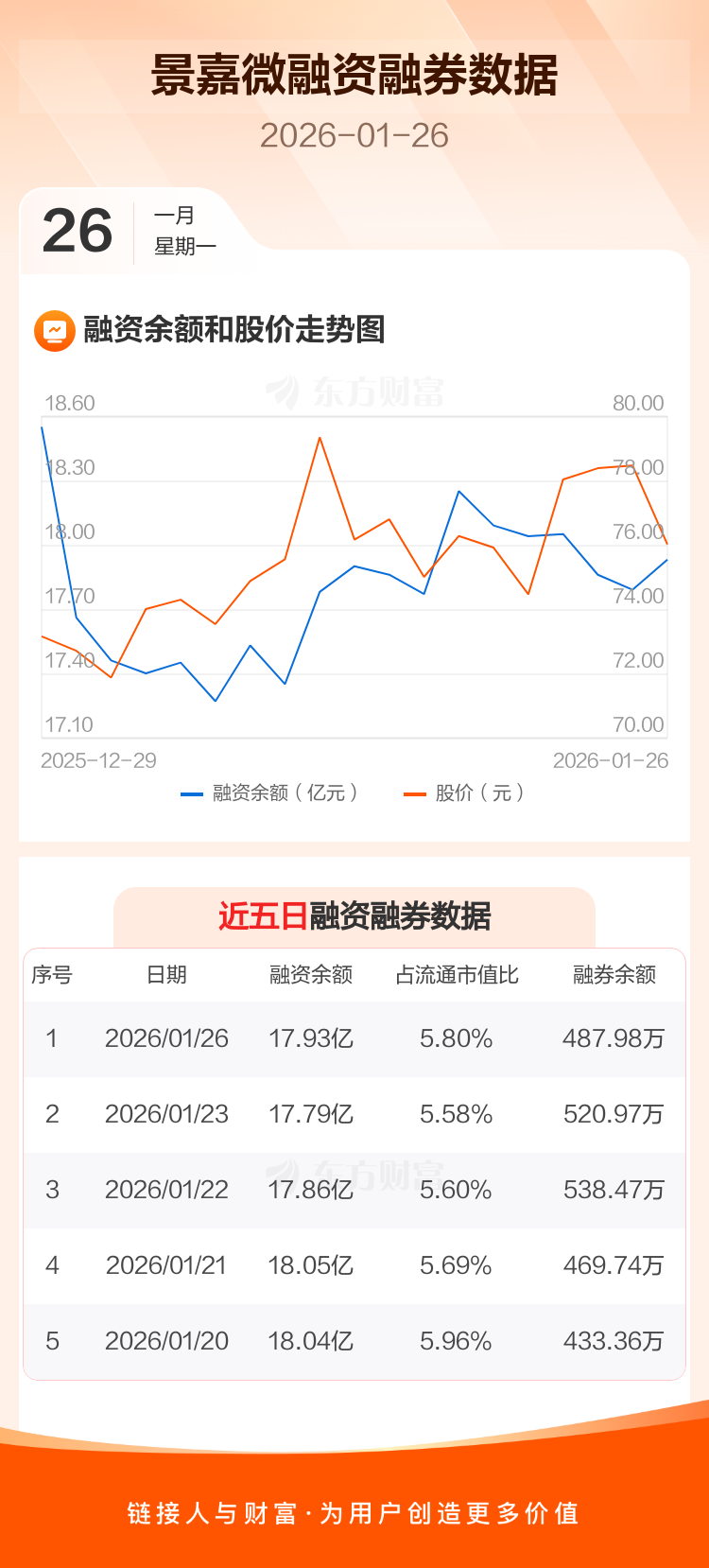 交易所最新数据显示,景嘉微于2026年1月26日获融资买入1.27亿元,融资偿还1.13亿元,当日融资净买入1377.11万元。目前,该股融资余额17.93亿,占流通市值比例为5.80%。