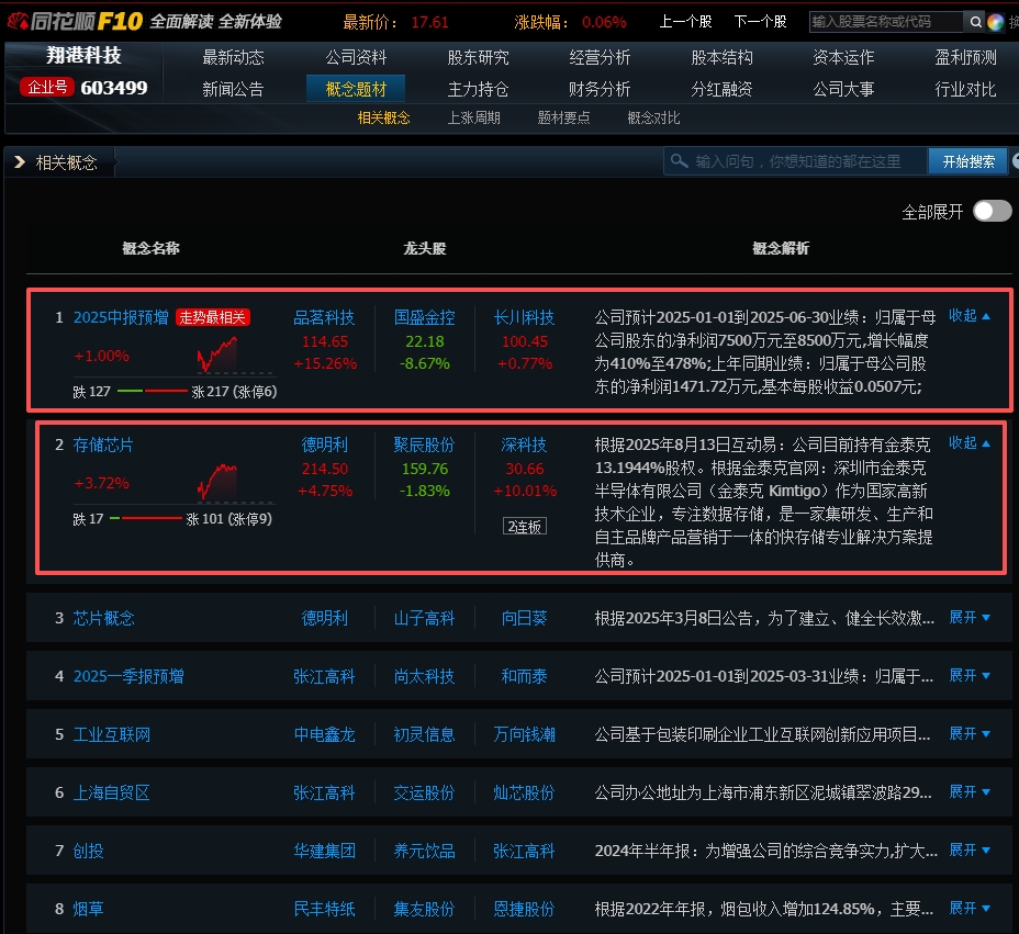 存储芯片新票:翔港科技!公告以自有或自筹资金1.5亿元认购深圳市金泰克半导体有限公司。金泰克是一家集研发、生产和主要提供内存、SSD相关存储产品,企业级内存产品已实现了批量出货,在国内同行业公司中具有一定领先优势。若东财能加上存储芯片概念且三季报继续大增或将起飞!$太极实业(SH600667)$ $大为股份(SZ002213)$ $诚邦股份(SH603316)$