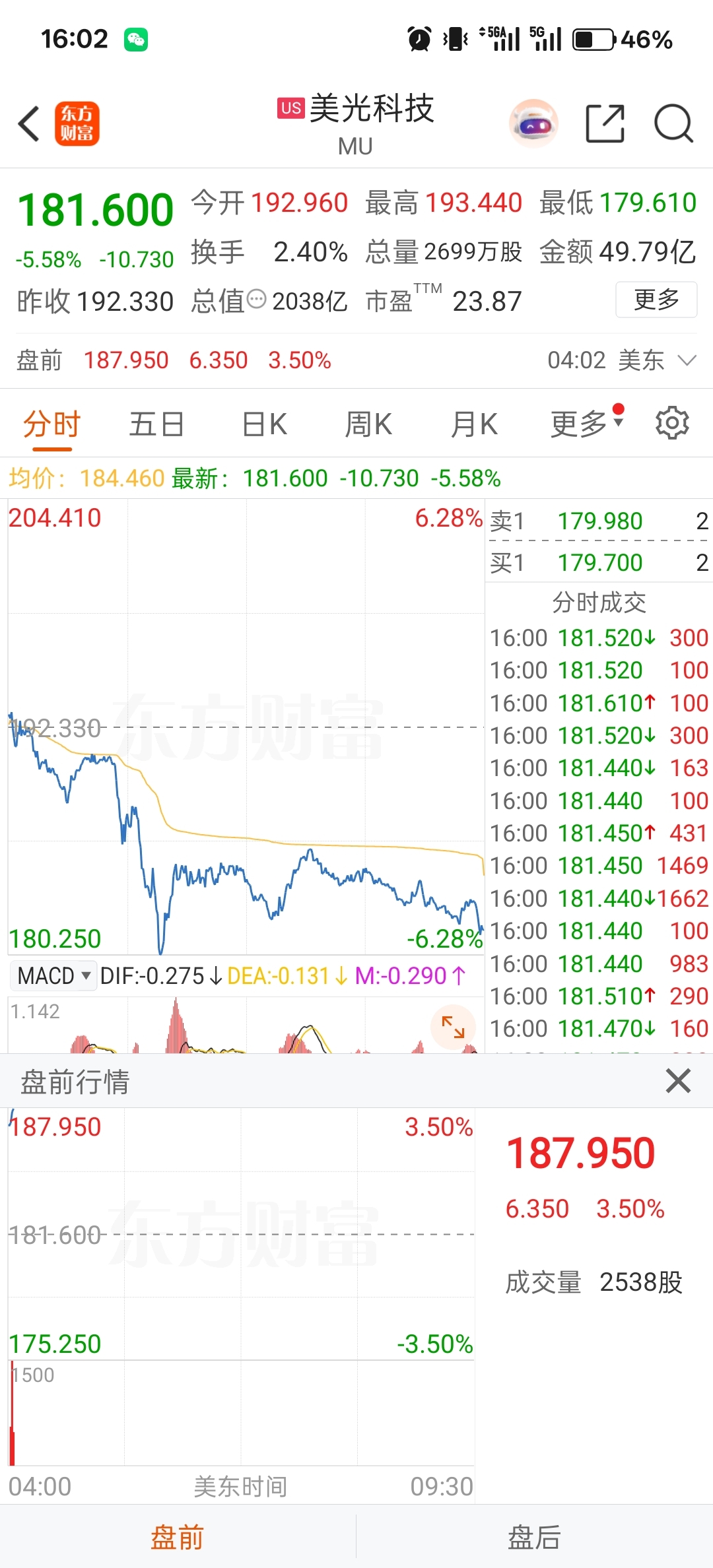 $香农芯创(SZ300475)$ 美光盘前大涨