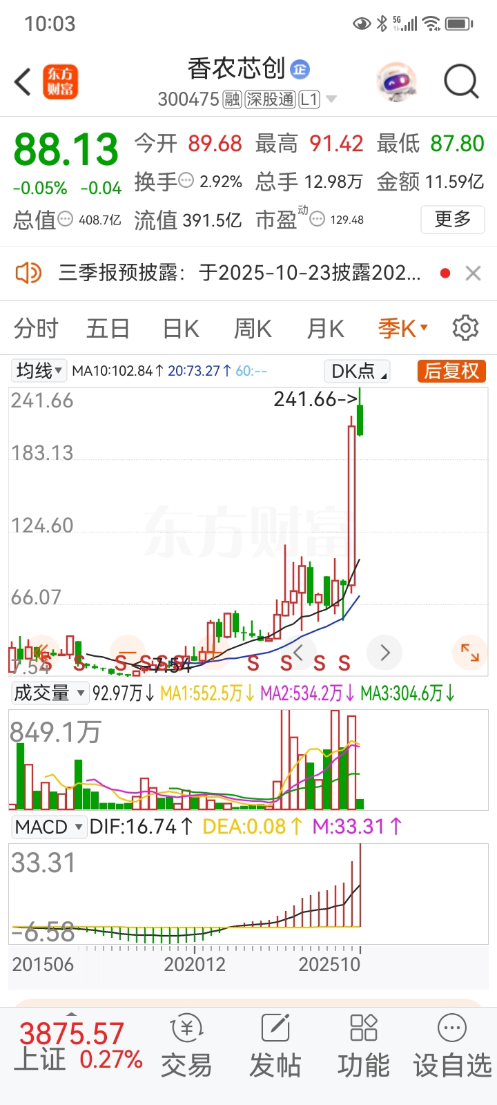 $香农芯创(SZ300475)$ 3年30倍