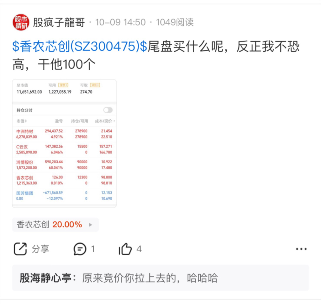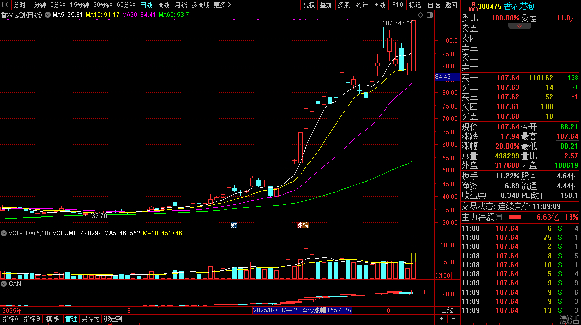 香浓我是上周五介入,中途我也提示,会继续突破100元,今天虽没卖高位,也许明天会