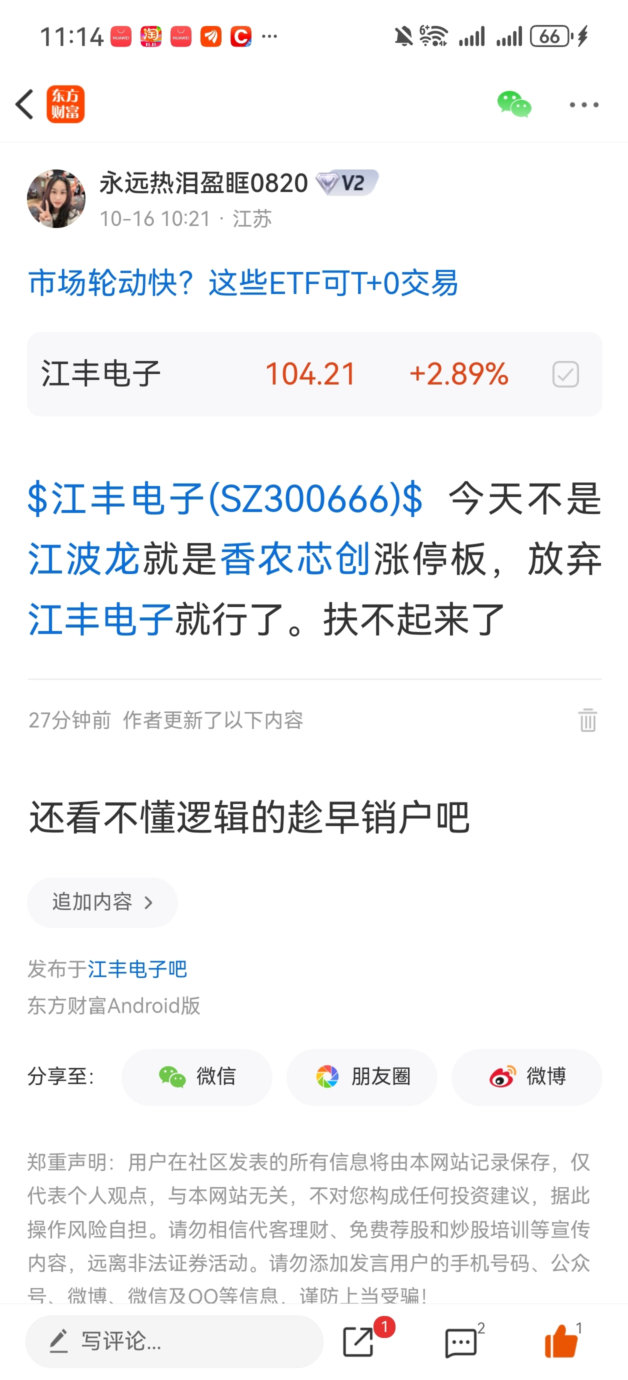 温馨提示: 1.根据《证券法》规定,禁止编造、传播虚假信息或者误导性信息,扰乱证券市场;2.用户在本社区发表的所有资料、言论等仅代表个人观点,与本网站立场无关,不对您构成任何投资建议。用户应基于自己的独立判断,自行决定证券投资并承担相应风险。《东方财富社区管理规定》