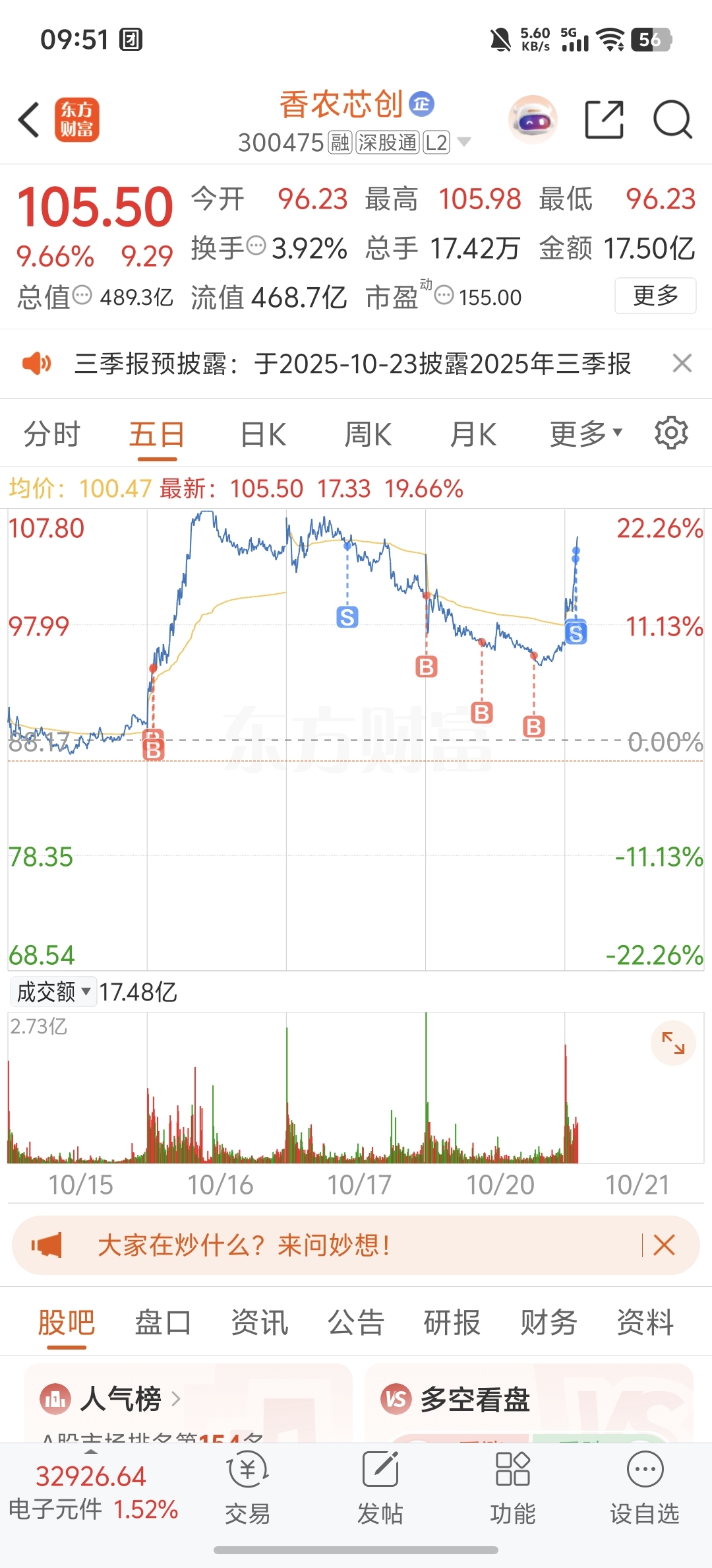 $香农芯创(SZ300475)$ 扛不住你这么洗,筹码还你主力