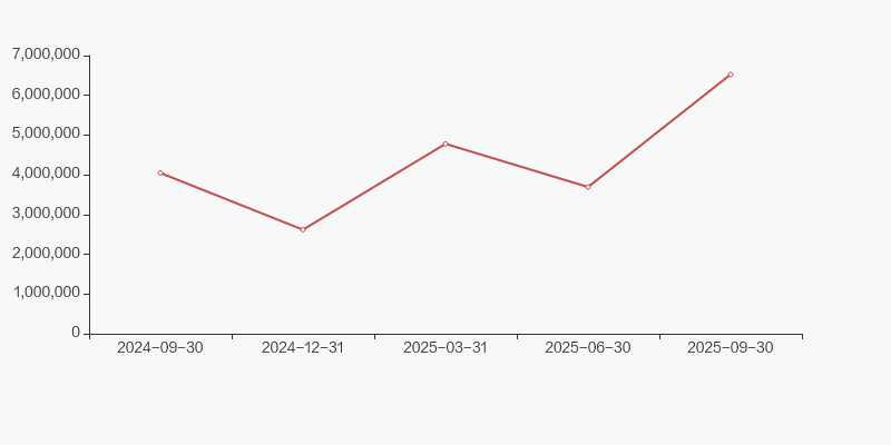 截至2025年9月30日,公司最新总股本为4.64亿股,其中流通股本为4.44亿股。户均持有流通股数量由上期的1.31万股下降至7579股,户均流通市值69.17万元。