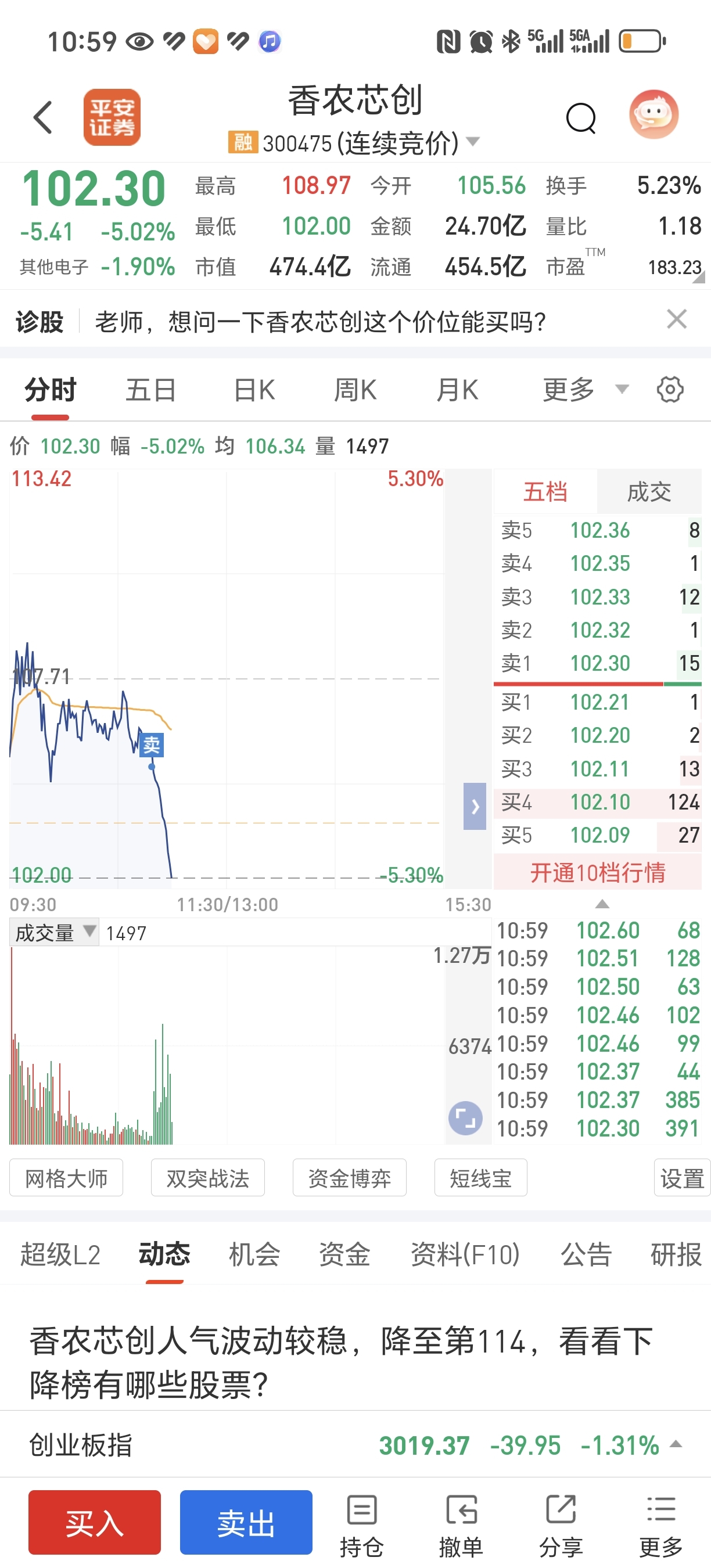$香农芯创(SZ300475)$ 是因为我砸盘了吗