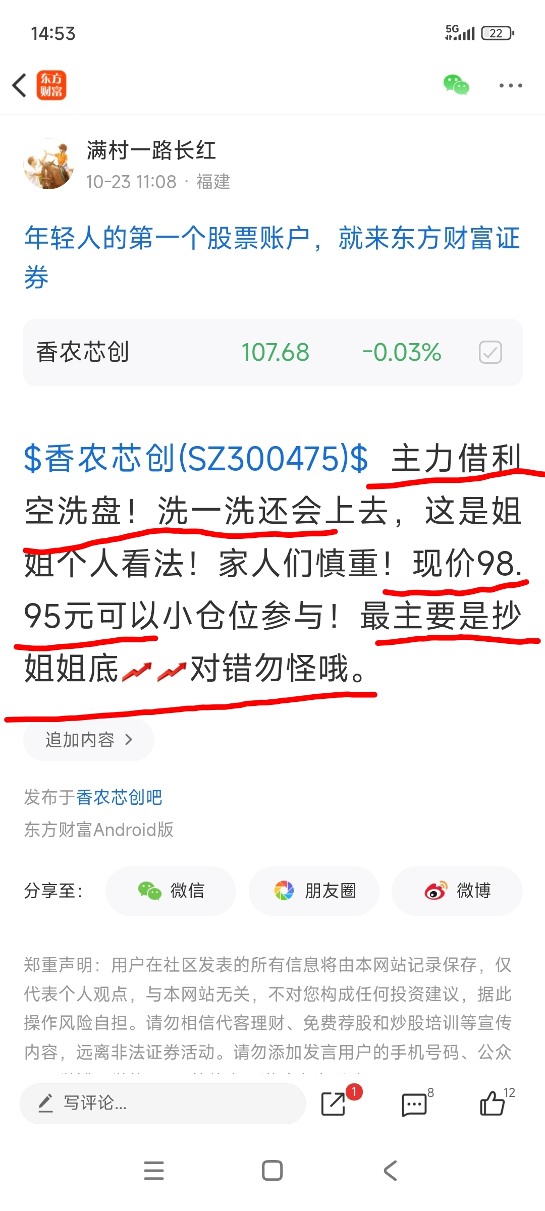 $香农芯创(SZ300475)$ 现价98.95叫抄姐姐底啦!!姐姐从不马后炮,只用心把每一次决策做扎实~如果这份靠谱能让你点个赞,对我来说就是超棒的鼓励啦!!!