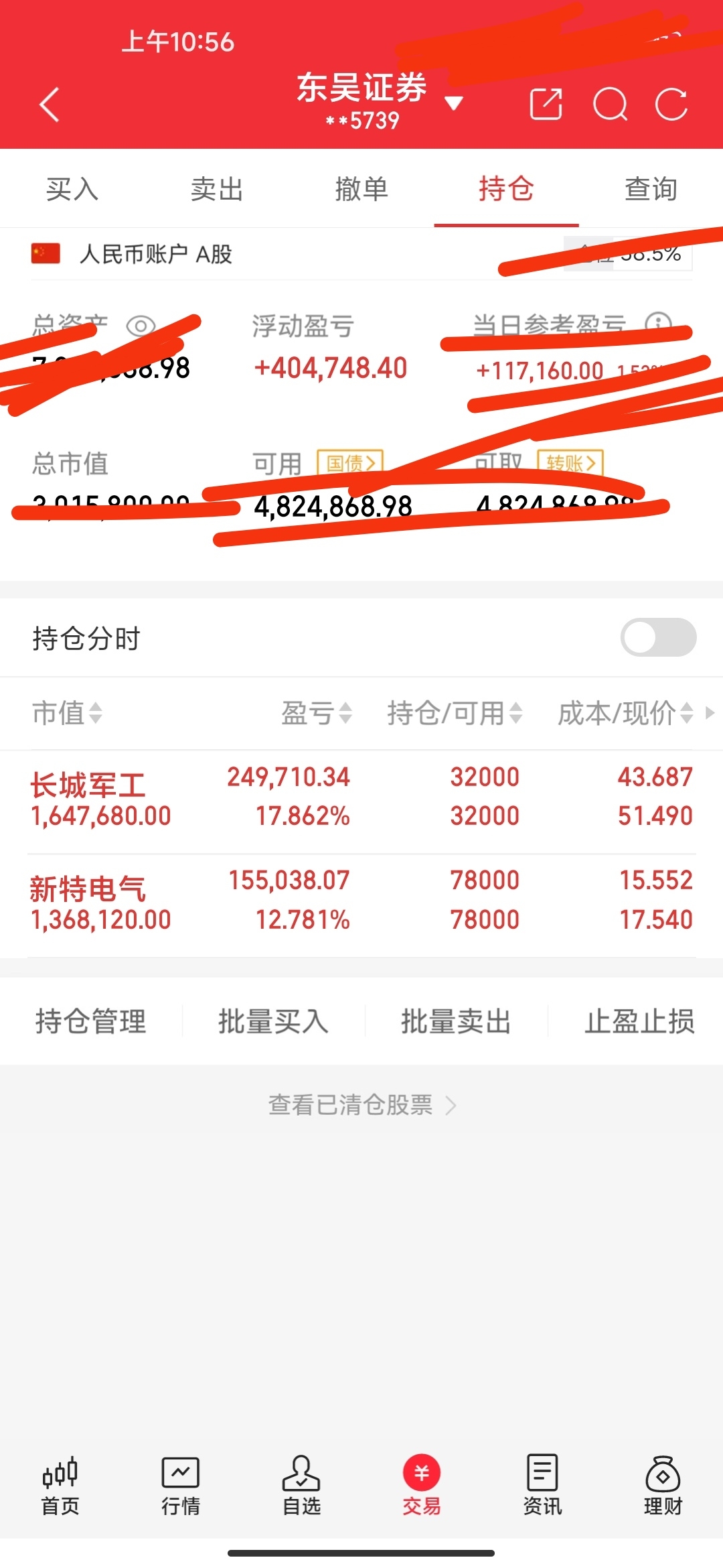 大家好,更新一下持仓。长城军工和新特电气已经入手半个月,继续持有。都挺不错的,长