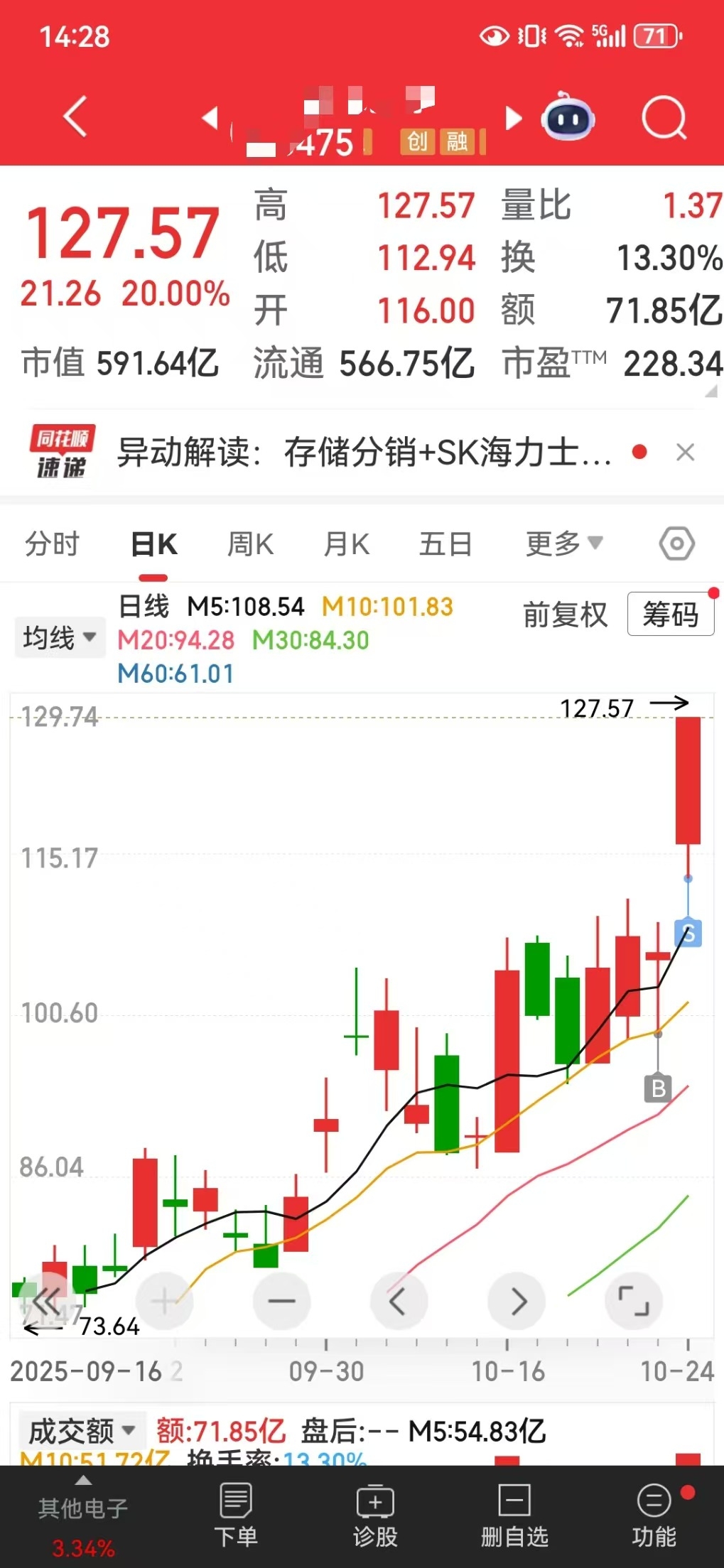 $香农芯创(SZ300475)$ 昨天入的存储今天拉高到14个点扔了,祝留下来的老师继续吃肉!