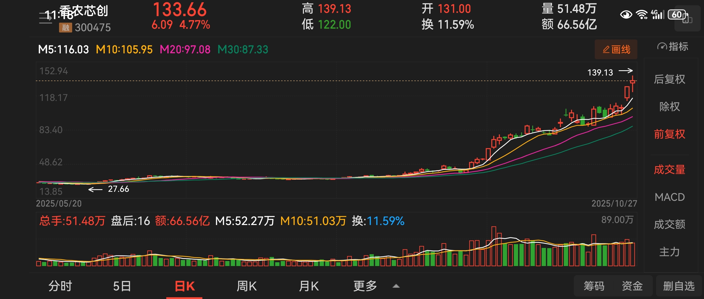$香农芯创(SZ300475)$ 说实话这票太高了,差不多撤了吧!明天拉高走,小散们别当端盘子的!看