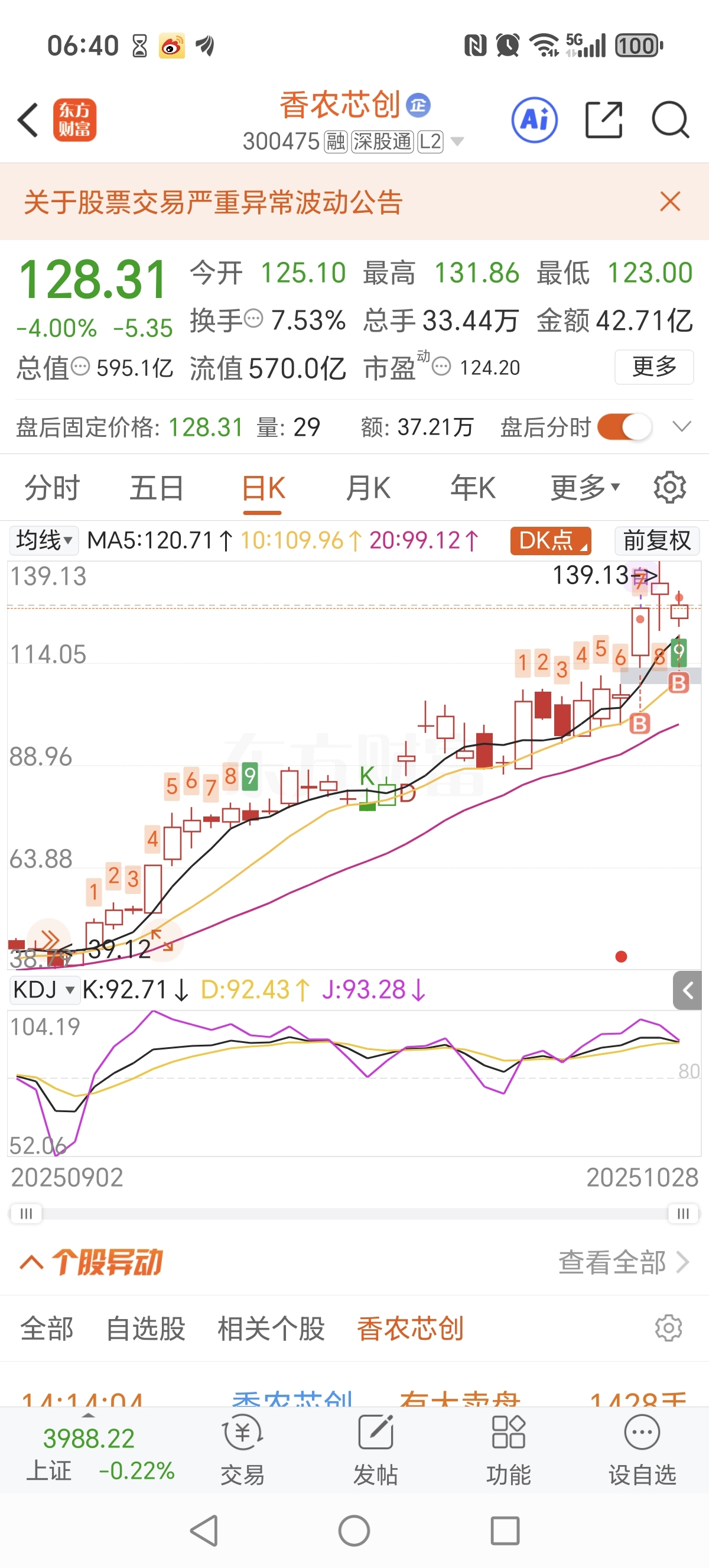 $香农芯创(SZ300475)$ 完了,神奇九转到头了,今天必跌!