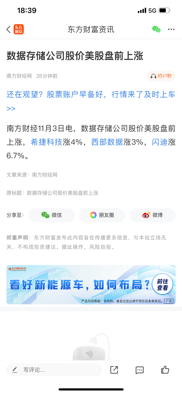 美股存储芯片股闪迪盘前涨6.7个点,明天香农大涨