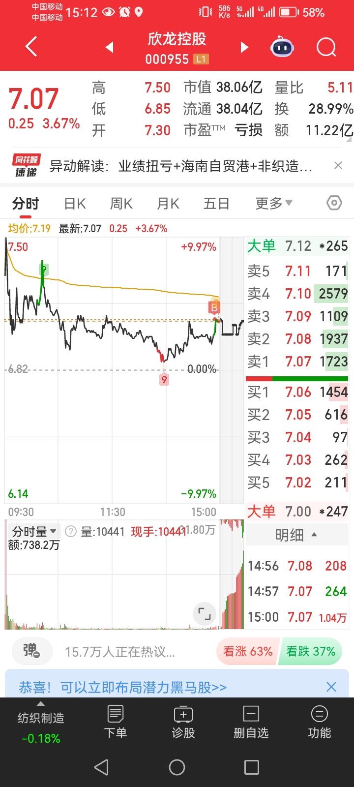 连最后一个趋势股也基本结束了,那么大块头股票就要进入调整期了,今天早晨分批拉高卖