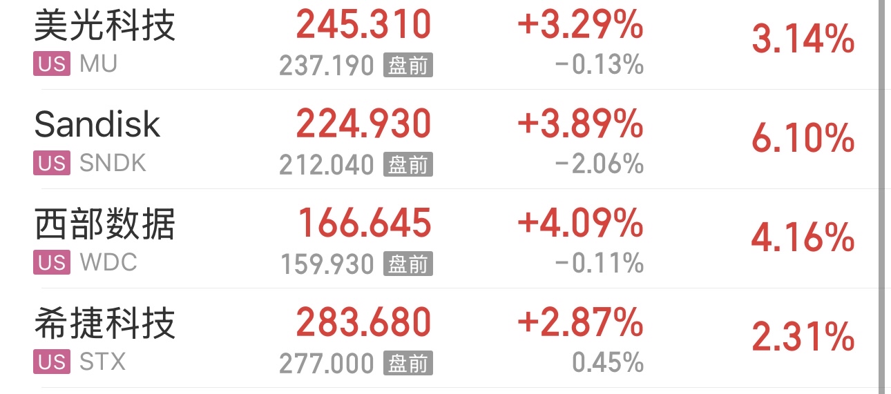 美国存储龙头闪迪,又创历史新高。开盘才15分钟。225美元,对应香龙至少要225