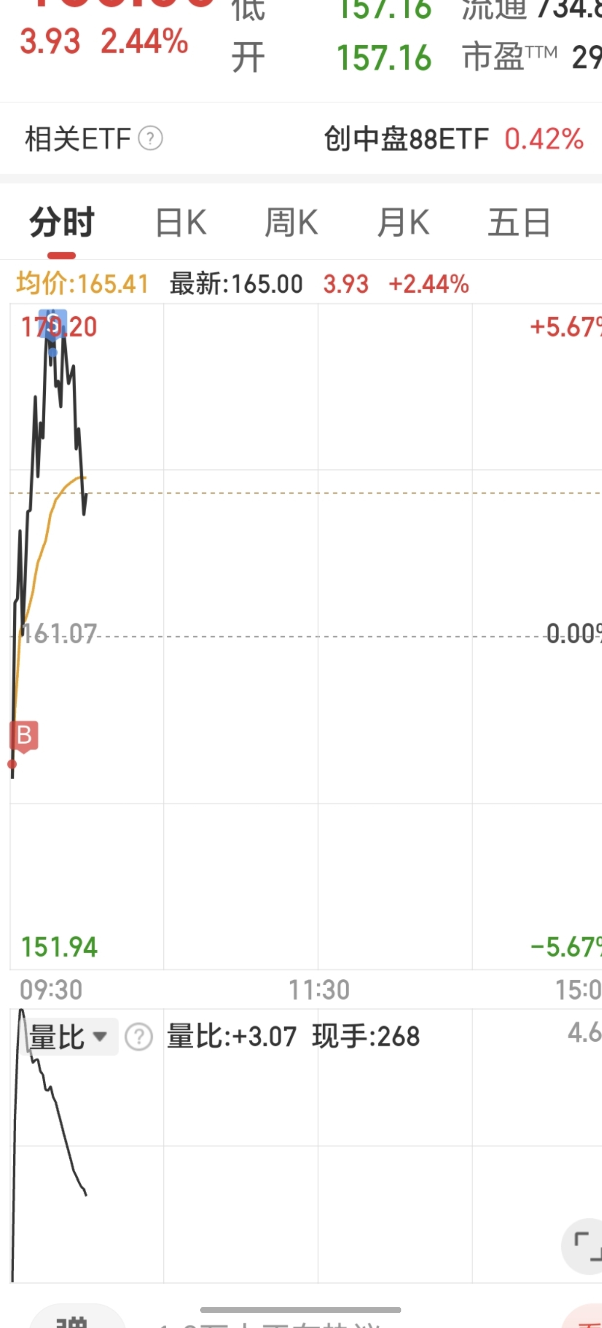 157.57进168.86出下班了宝子们星期一继续新高大家一起发财