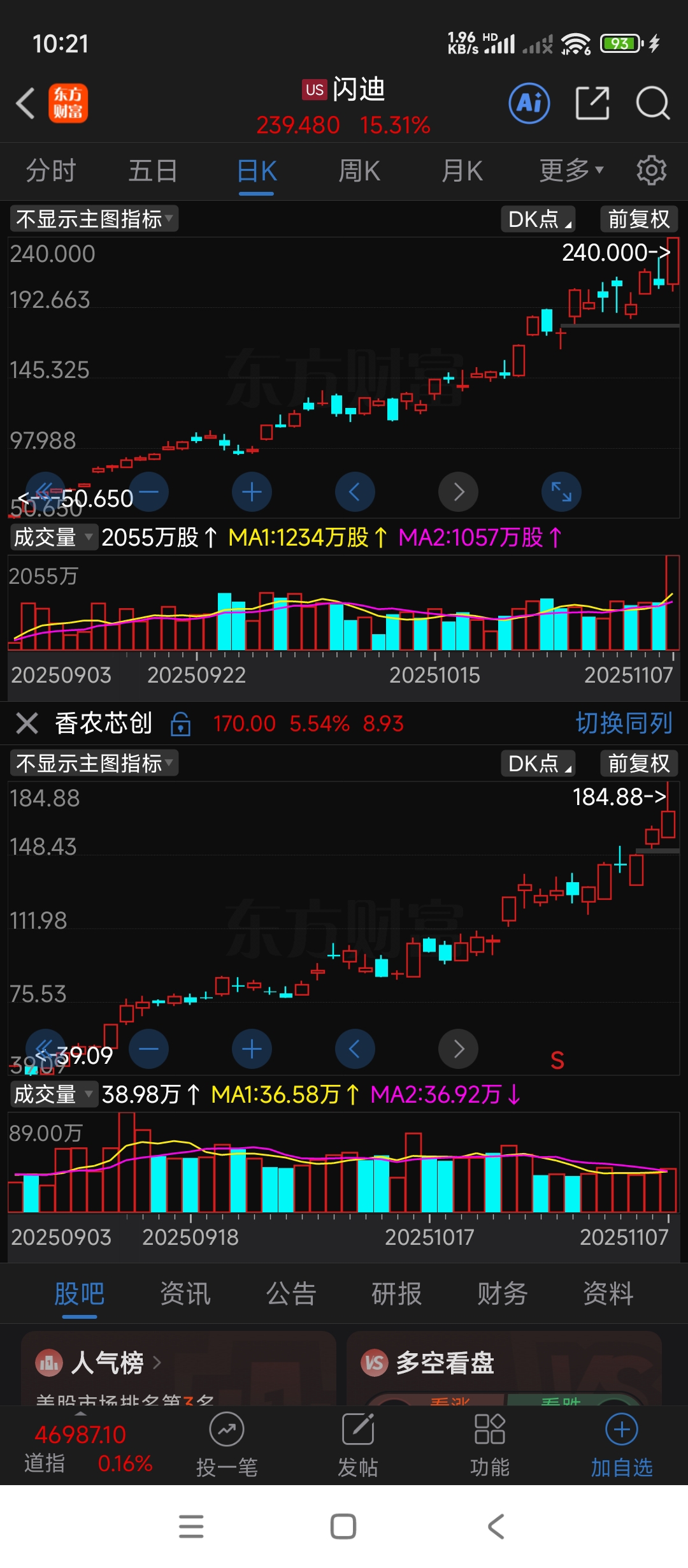 $香农芯创(SZ300475)$ 中国股民晚上不睡觉盯着闪迪 美国股民晚上不睡觉盯着香香。所以这俩货走成这个样子。