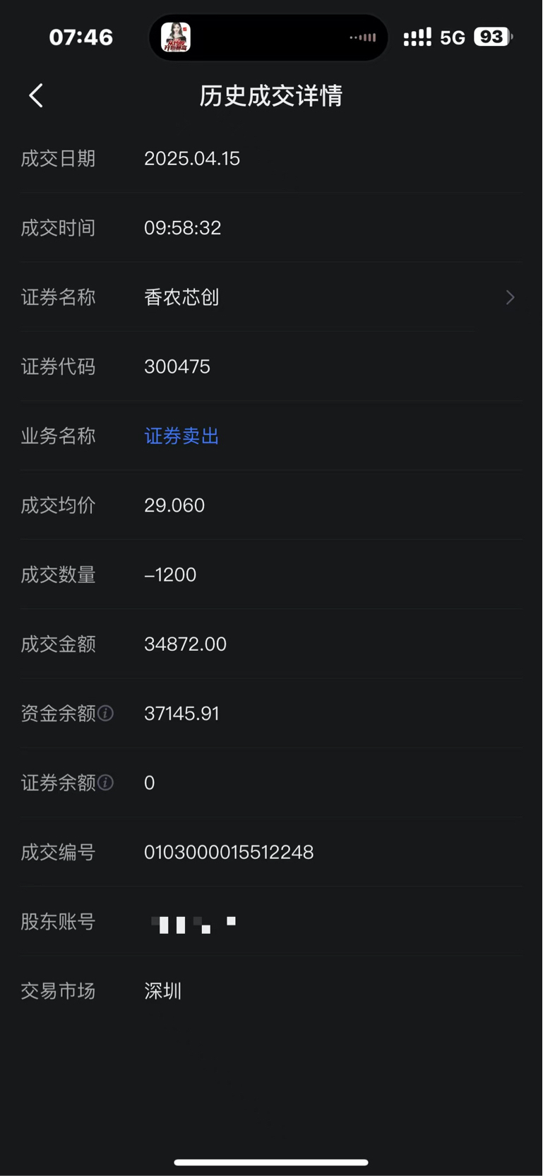 $香农芯创(SZ300475)$ 看见这一张股票卖出的截图,好想抽自己几耳光,把自己抽死