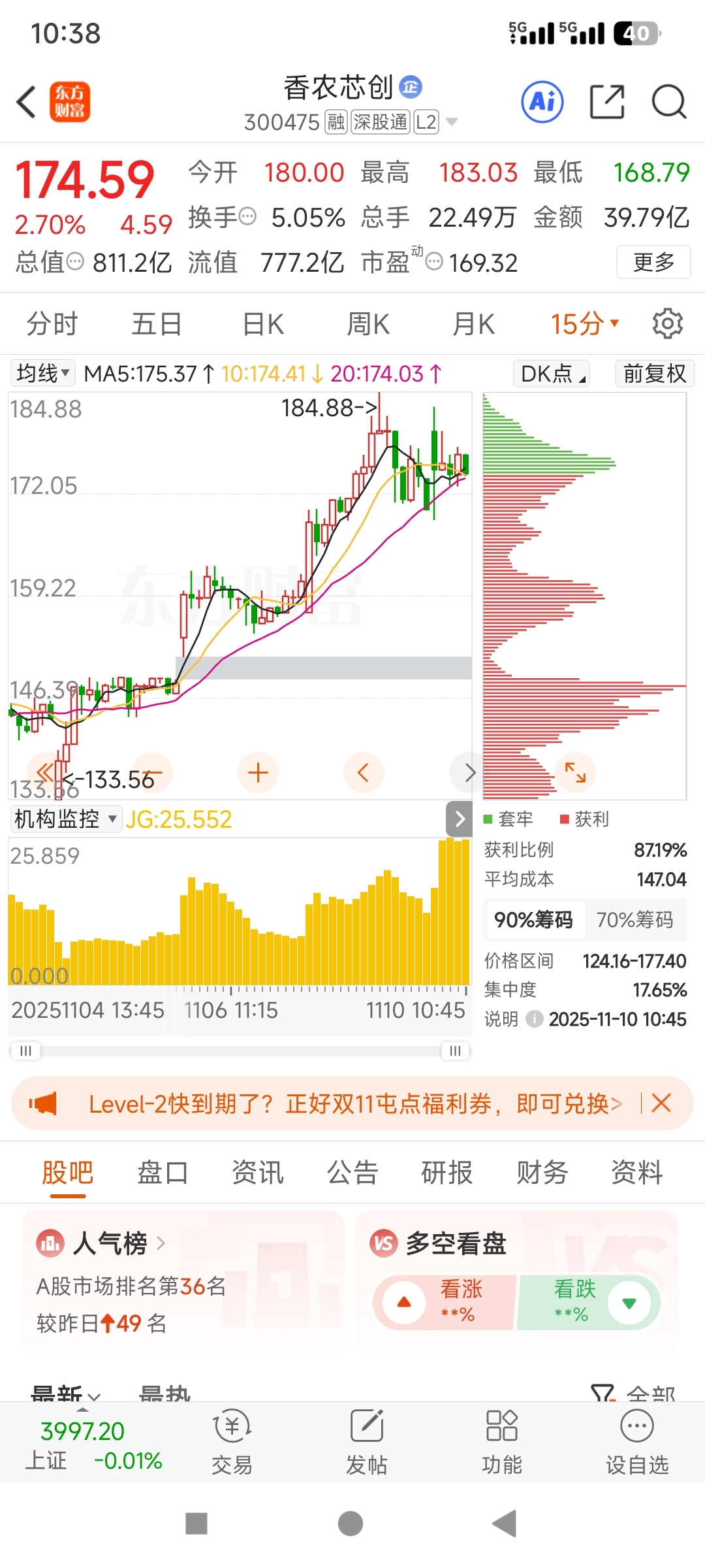 $香农芯创(SZ300475)$ 机构买入量在放大 股价怎么还45度向下?