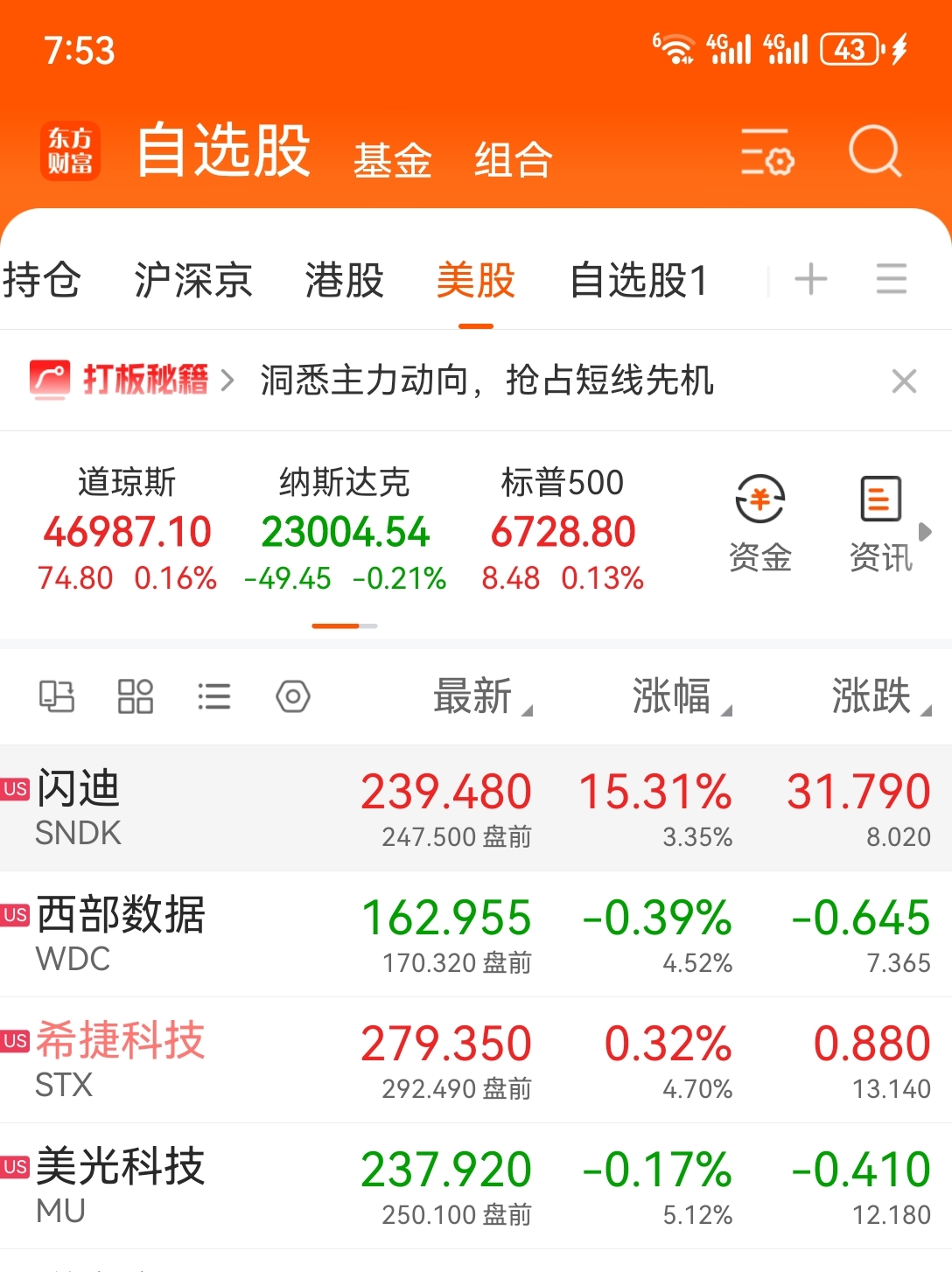 美国存储盘前大涨