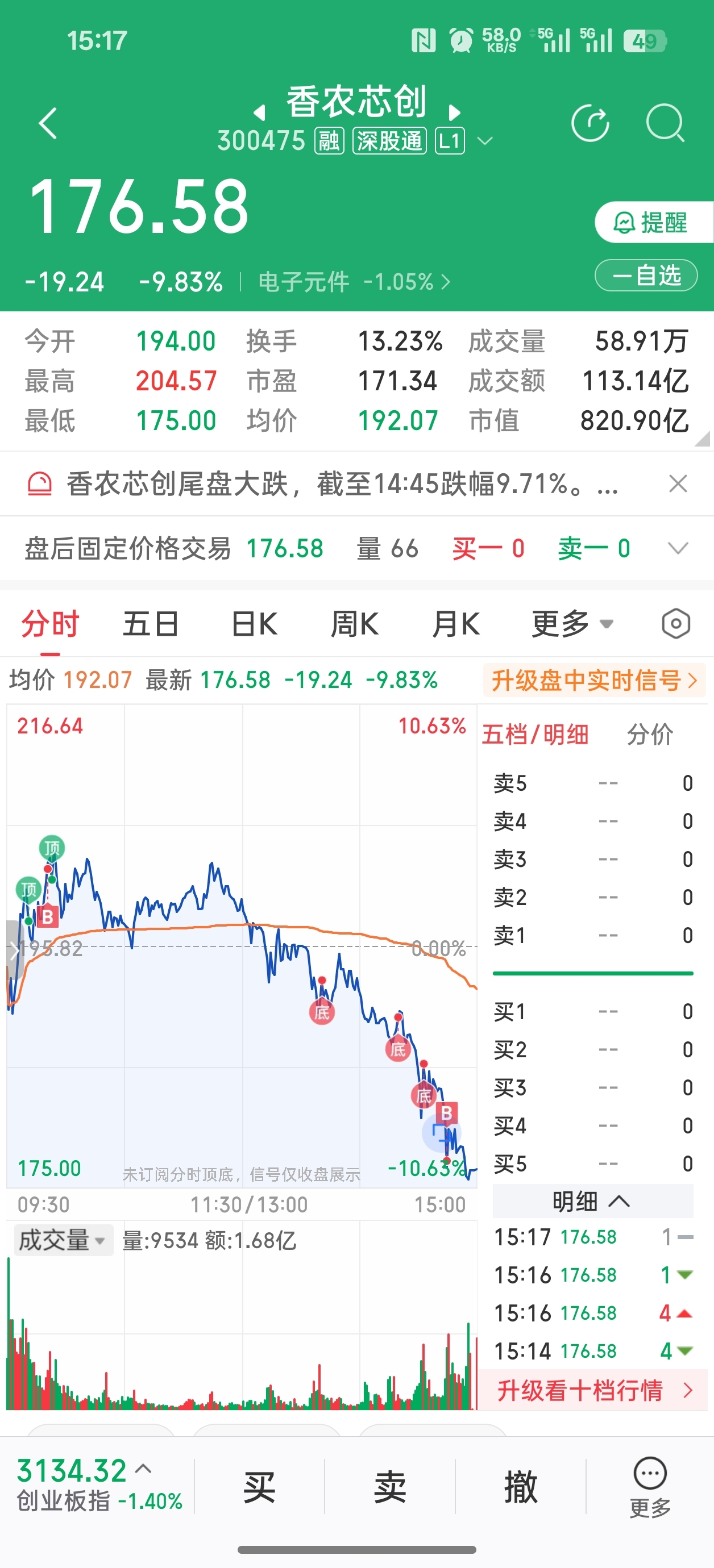 $香农芯创(SZ300475)$ 废了兄弟们今天早上进去接盘,下午补仓,明天等着割肉,一波操作最少亏五千
