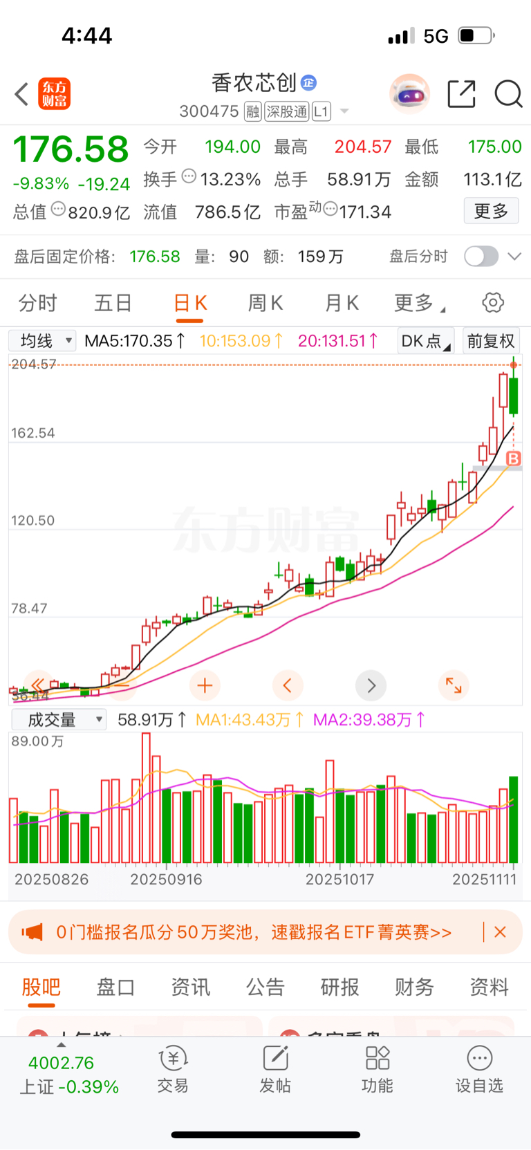 $香农芯创(SZ300475)$ 不好意思,我入场买崩了