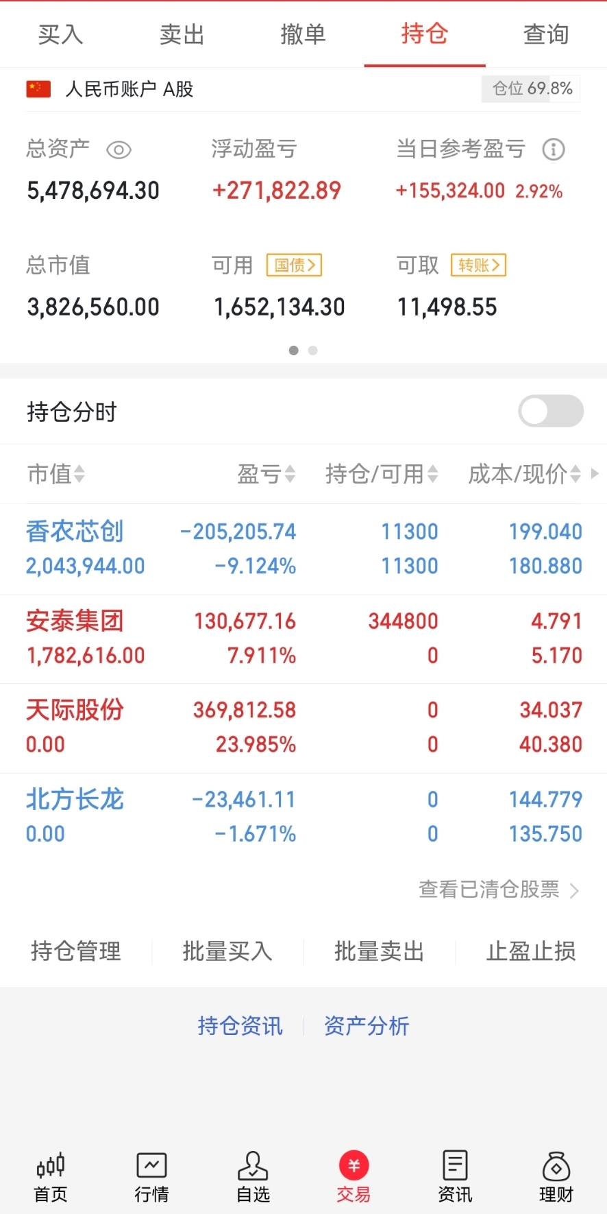 周哥早盘记录仓位香浓芯创,安泰集团今天也很强势,下午在看看今天冲高走了,在里面的