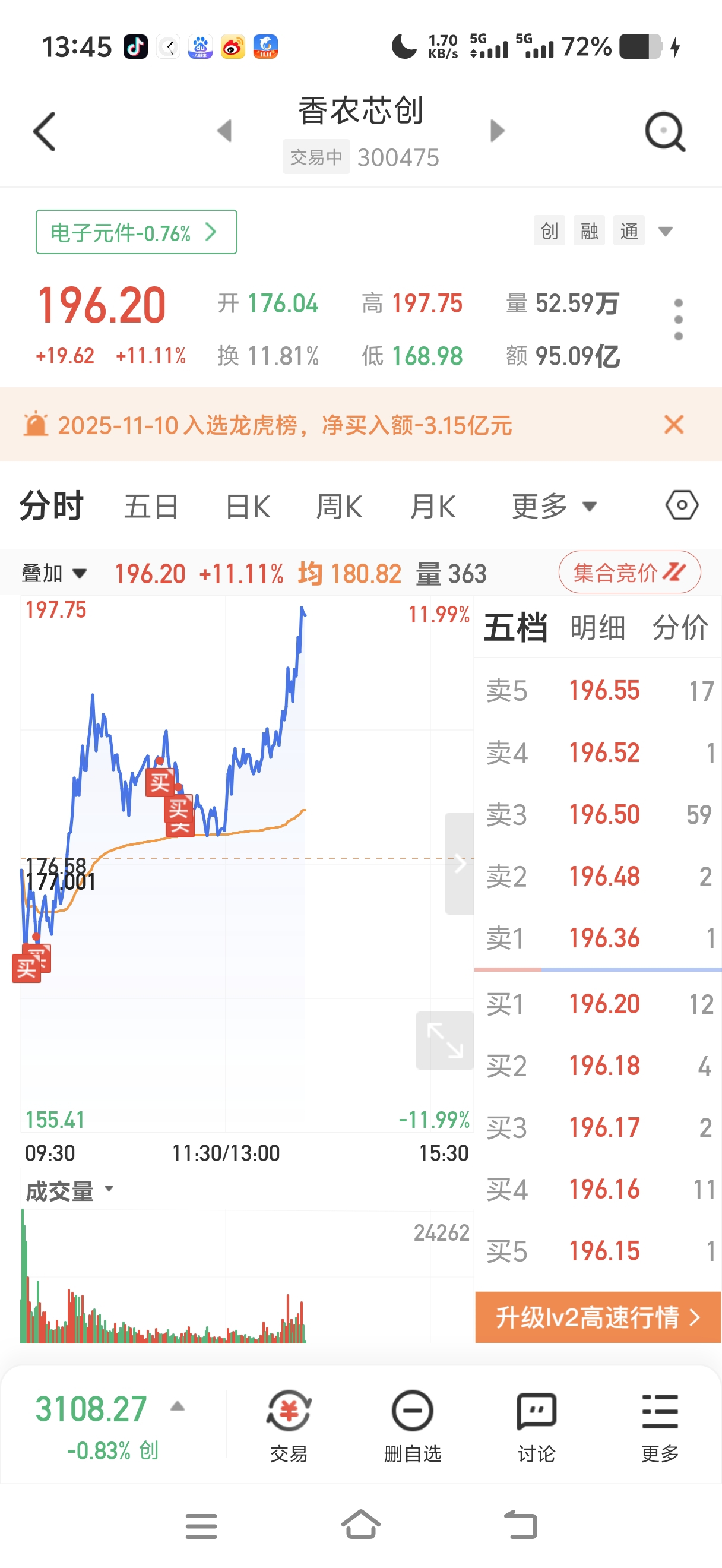 $香农芯创(SZ300475)$ 昨天最低点割肉,今早水下又买进去,水上又加仓,赌对了。