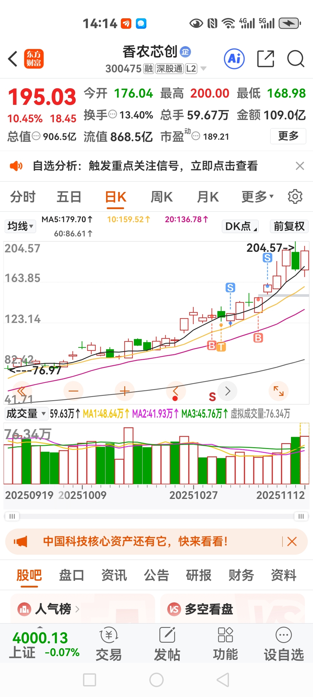 $香农芯创(SZ300475)$ 唉!这么好的股票,却没赚到它的钱,几次想买回来都不敢!我估计是不适合炒股的人