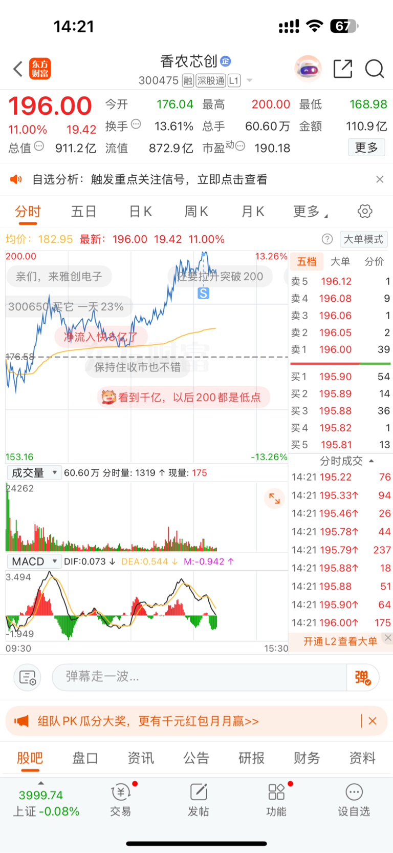 $香农芯创(SZ300475)$ 止盈落袋为安