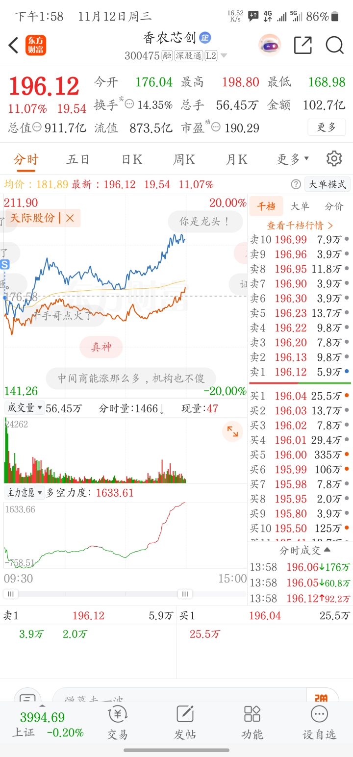 上面香农下面天际通过这个分时叠加很明显看出来香农作为趋势这一块率先表态带动了天际