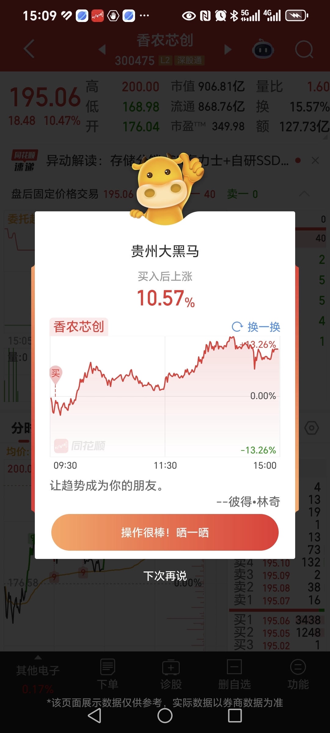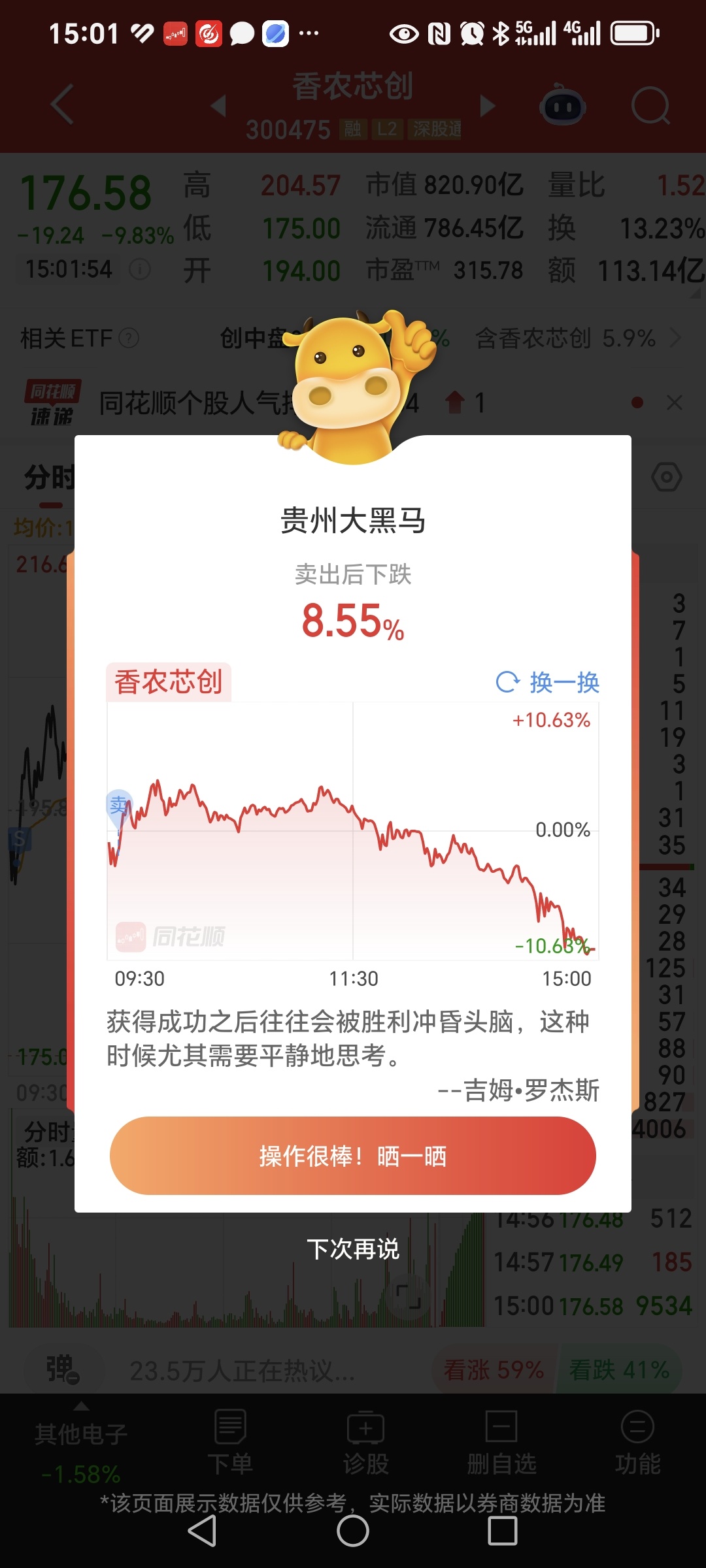 $香农芯创(SZ300475)$ 昨天发帖五日线接,今天中午发帖看好反包,如期而至!昨天逃顶,今天抄底,不过都没有买到最低卖到最高