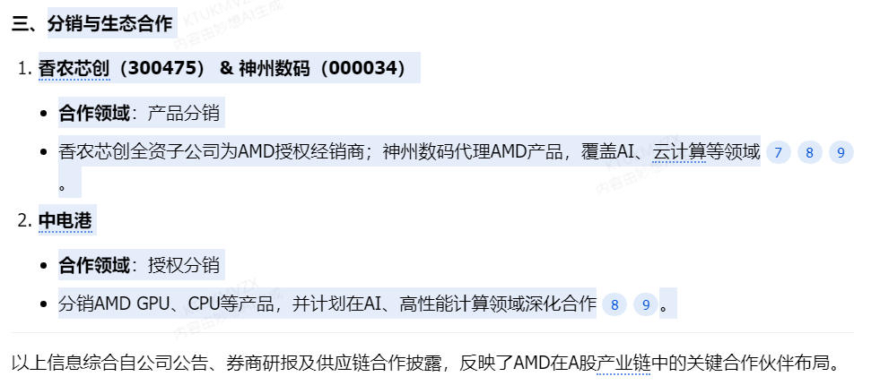 合作领域:授权分销分销AMDGPU、CPU等产品,并计划在AI、高性能计算领域深