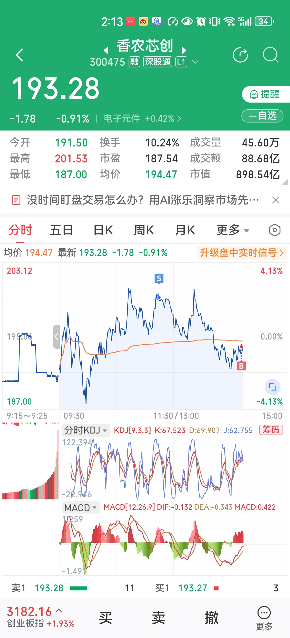 $香农芯创(SZ300475)$ 尾盘要拉升了,赶紧接回来,明天怕高攀不起
