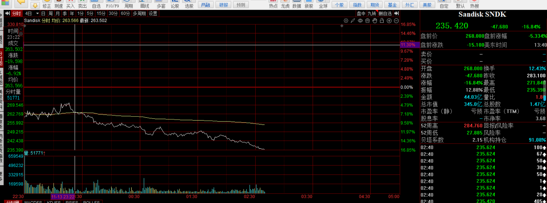 闪迪目前暴跌将近17%,香农明天能接住吗?感觉很难
