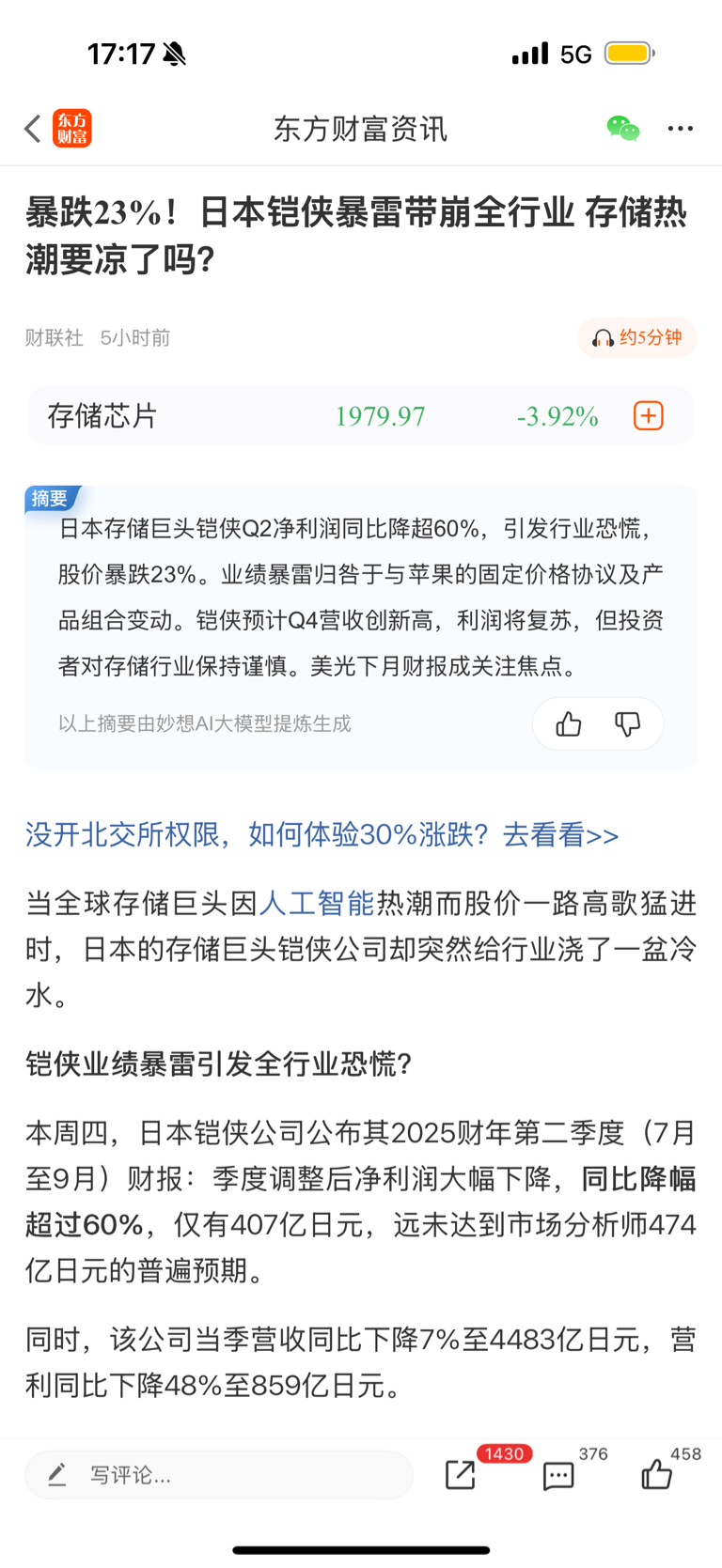 暴跌23%!日本铠侠暴雷带崩全行业 存储热潮要凉了吗?