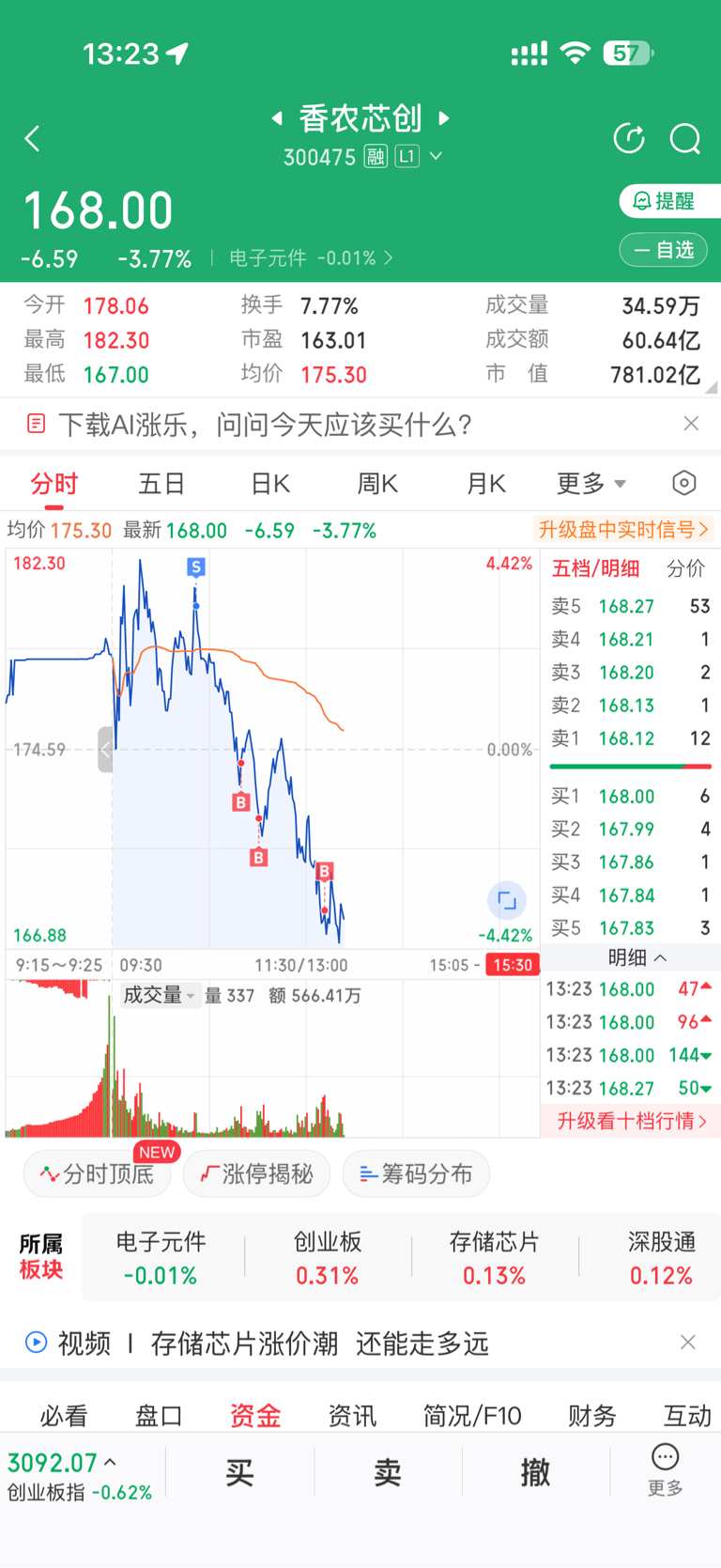 $香农芯创(SZ300475)$ 加满,躺平了,继续格局吧,躺到200大家呼我一下,哈哈