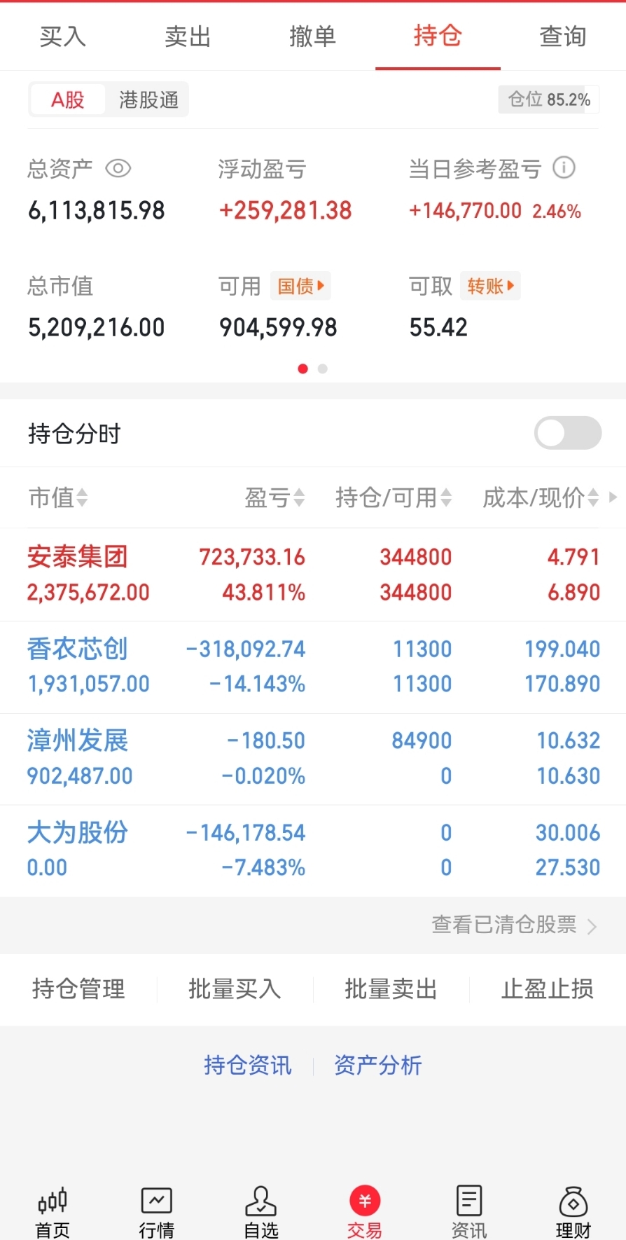 仓位$香农芯创(SZ300475)$ $安泰集团(SH600408)$ $漳州发展(SZ000753)$