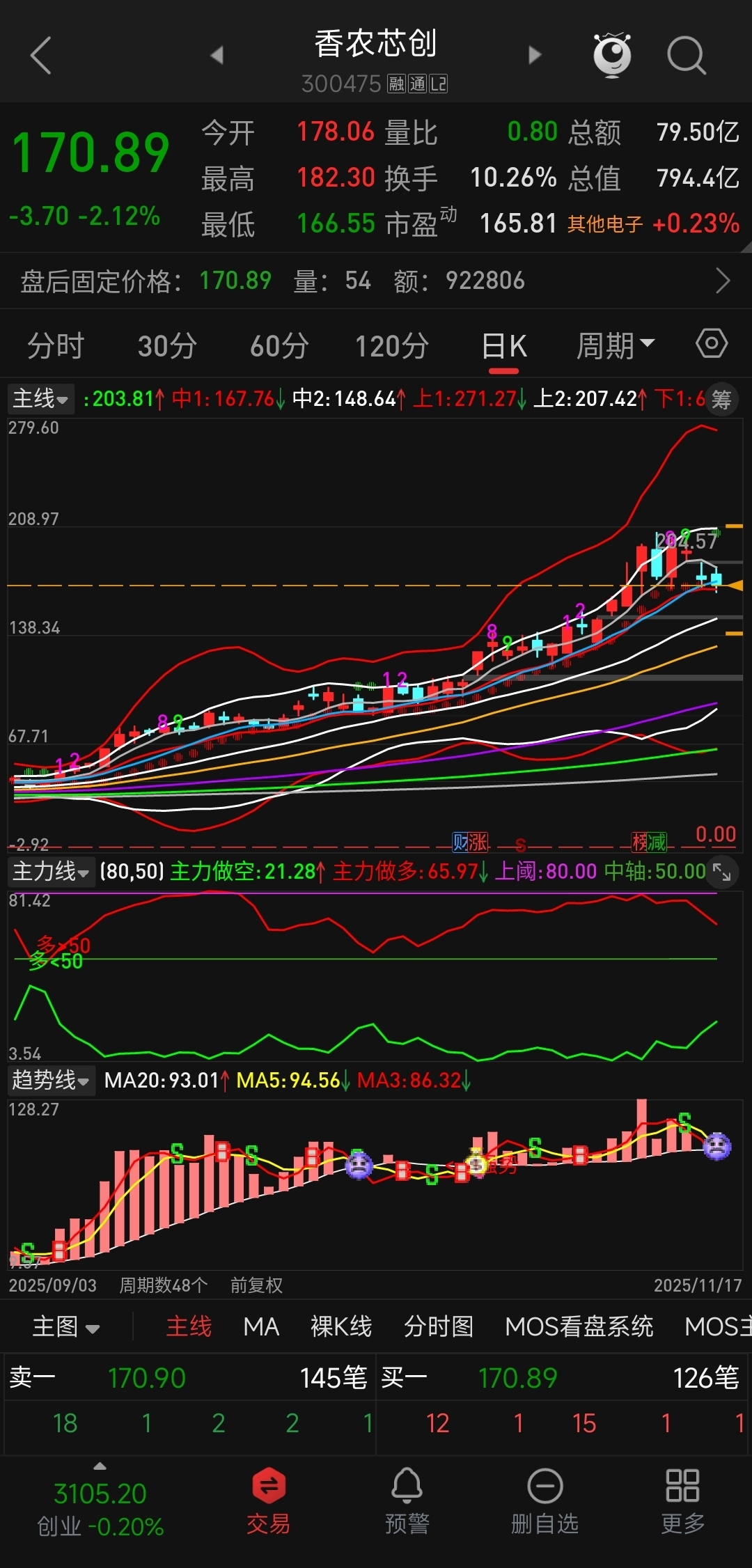 60分钟线向下开口,主力线死叉后继续走弱,趋势线加速下行。日线收口了,主力做多线
