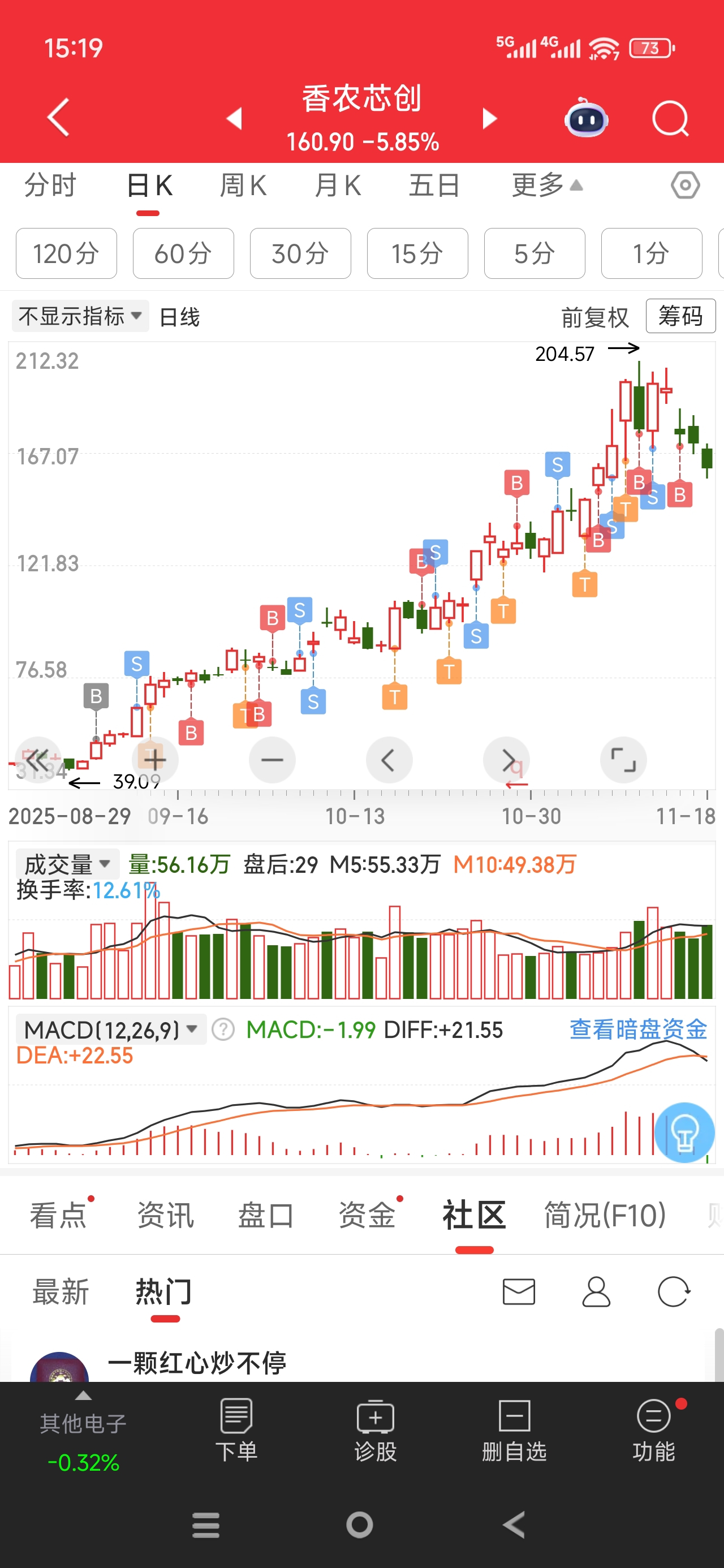 $香农芯创(SZ300475)$ 从42陪伴到 204.57,一路做t,现在成本为负数,趋势其实没走完,但是有些人追高买的这几天确实也难受,我之前也说了不破10日线不爆量,短线拿着,现在已经破了就应该执行标准(ps:我纯属无所谓的态度,因为成本低,想再在看看它的走势